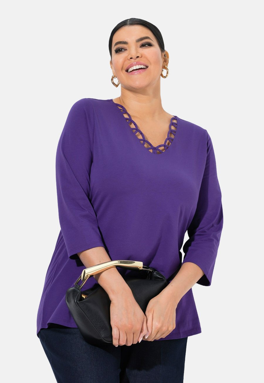 Топ Ulla Popken OPENWORK TRIM 3/4 SLEEVE , Purple