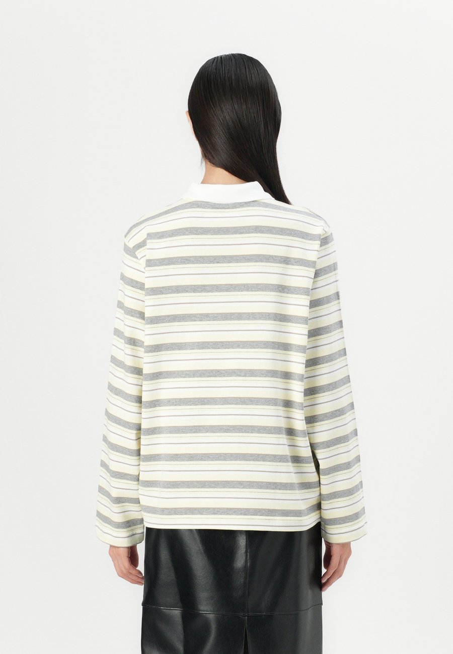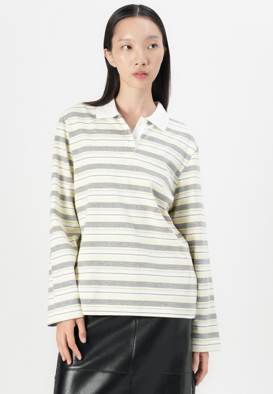 Небольшая этикетка на уровне груди. Воротник: рубашка поло.Материал и уход