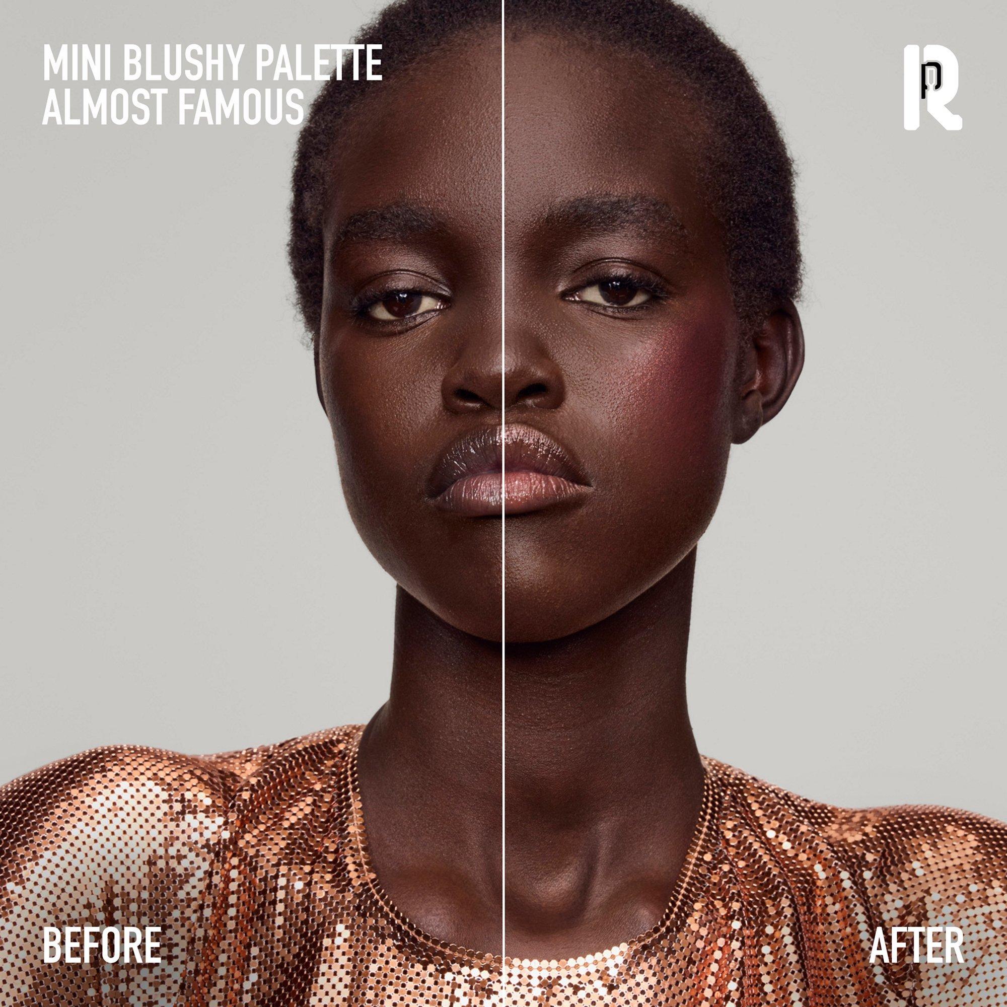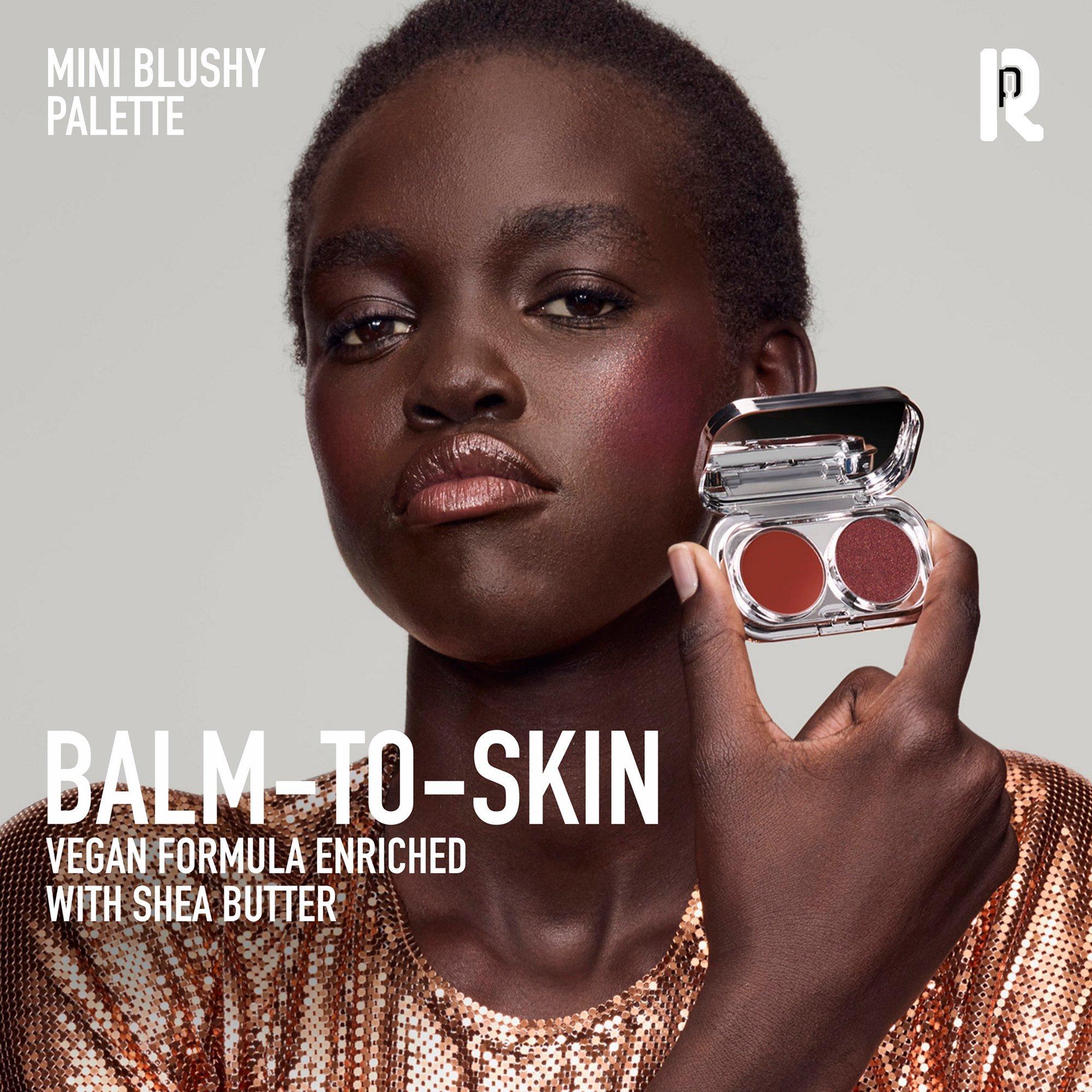 - Создайте естественное, здоровое сияние с помощью мини-палитры румян Mini Blushy Palette - тонирующих румян, которые ощущаются как бальзам на коже и обеспечивают комфорт.