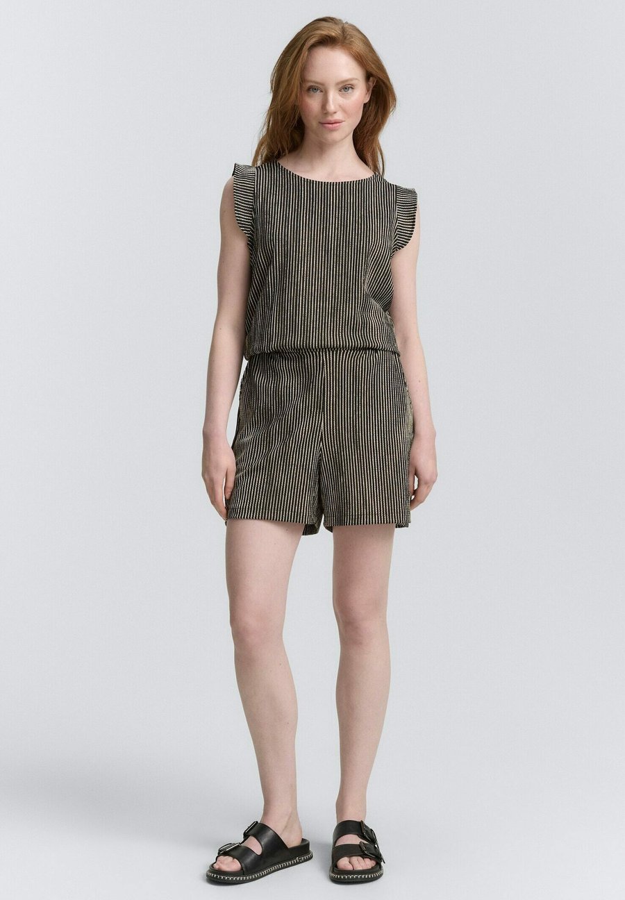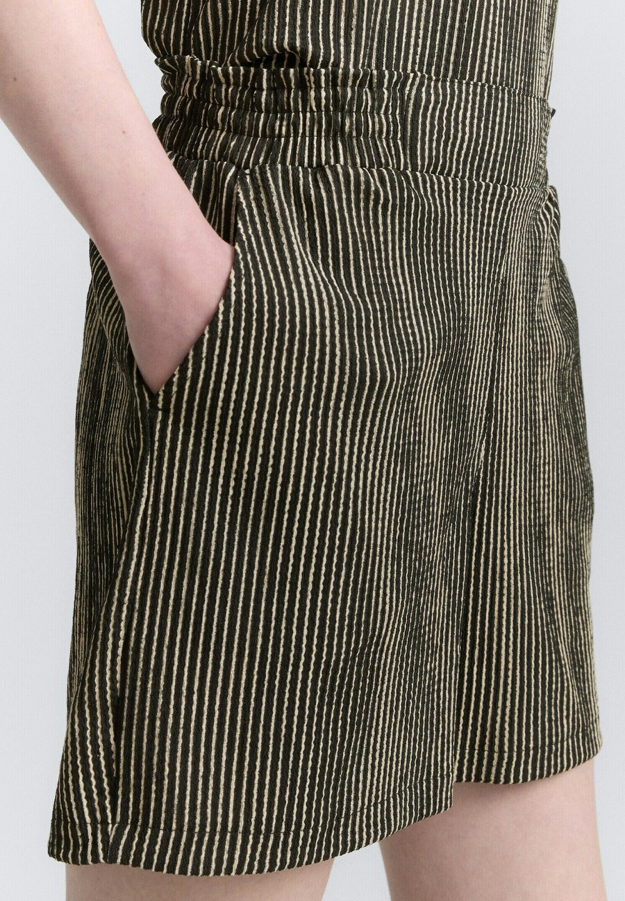 Шорты свободного кроя с эластичным поясом и боковыми карманами. Изготовлены из фактурной жаккардовой ткани. Посадка: ВысокаяМатериал и уход