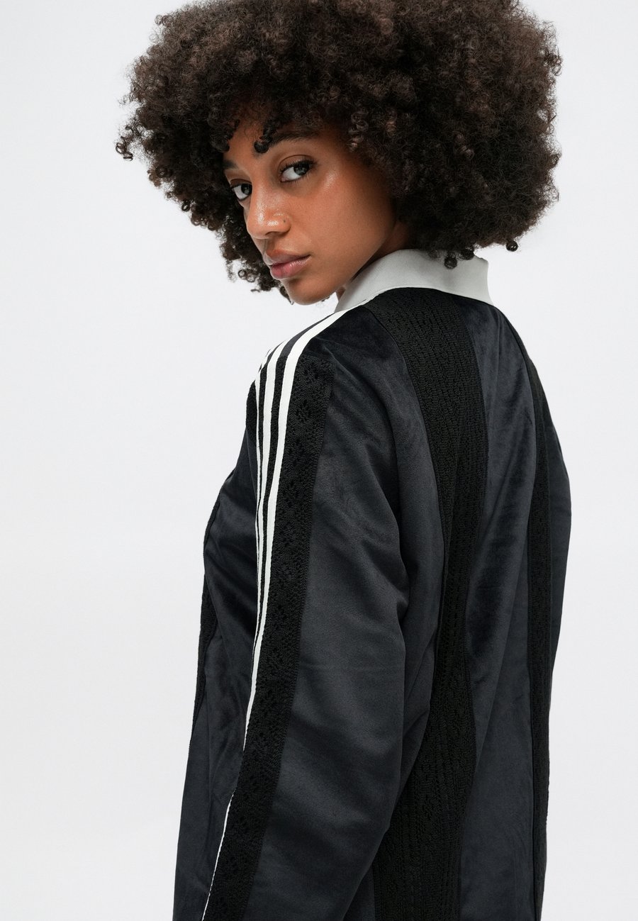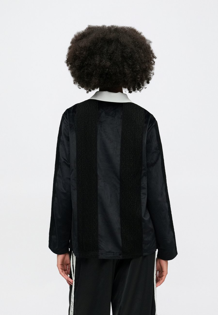 Небольшая этикетка-флажок на уровне груди. Воротник: рубашка поло.Материал и уход