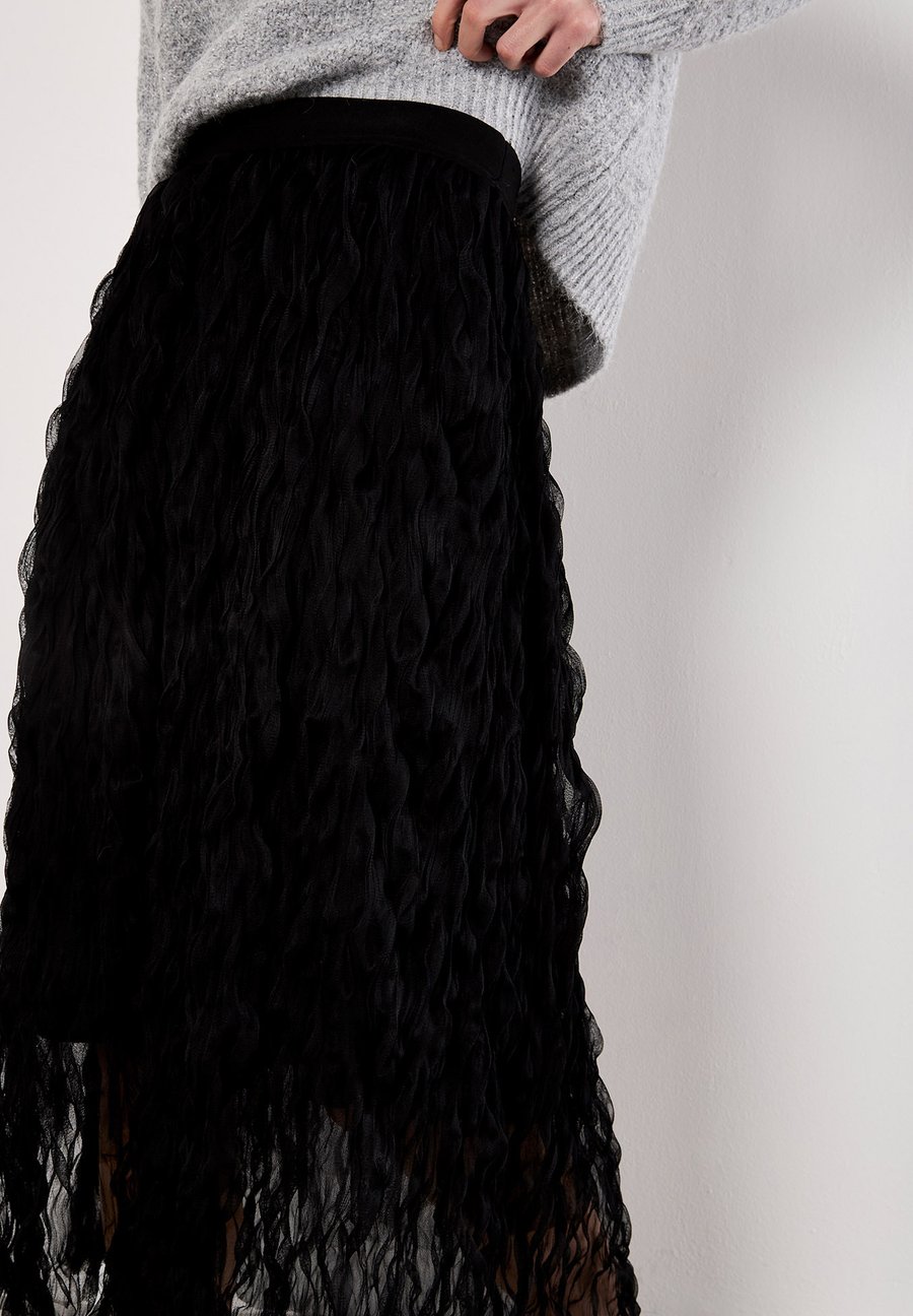 Эта юбка миди, созданная для ношения как в повседневном, так и в нарядном стиле, является универсальным элементом гардероба. Изготовлена из волнистого тюля и имеет подкладку для комфорта, а также эластичный пояс для удобной посадки. Узор: ОднотонныйМатериал и уход