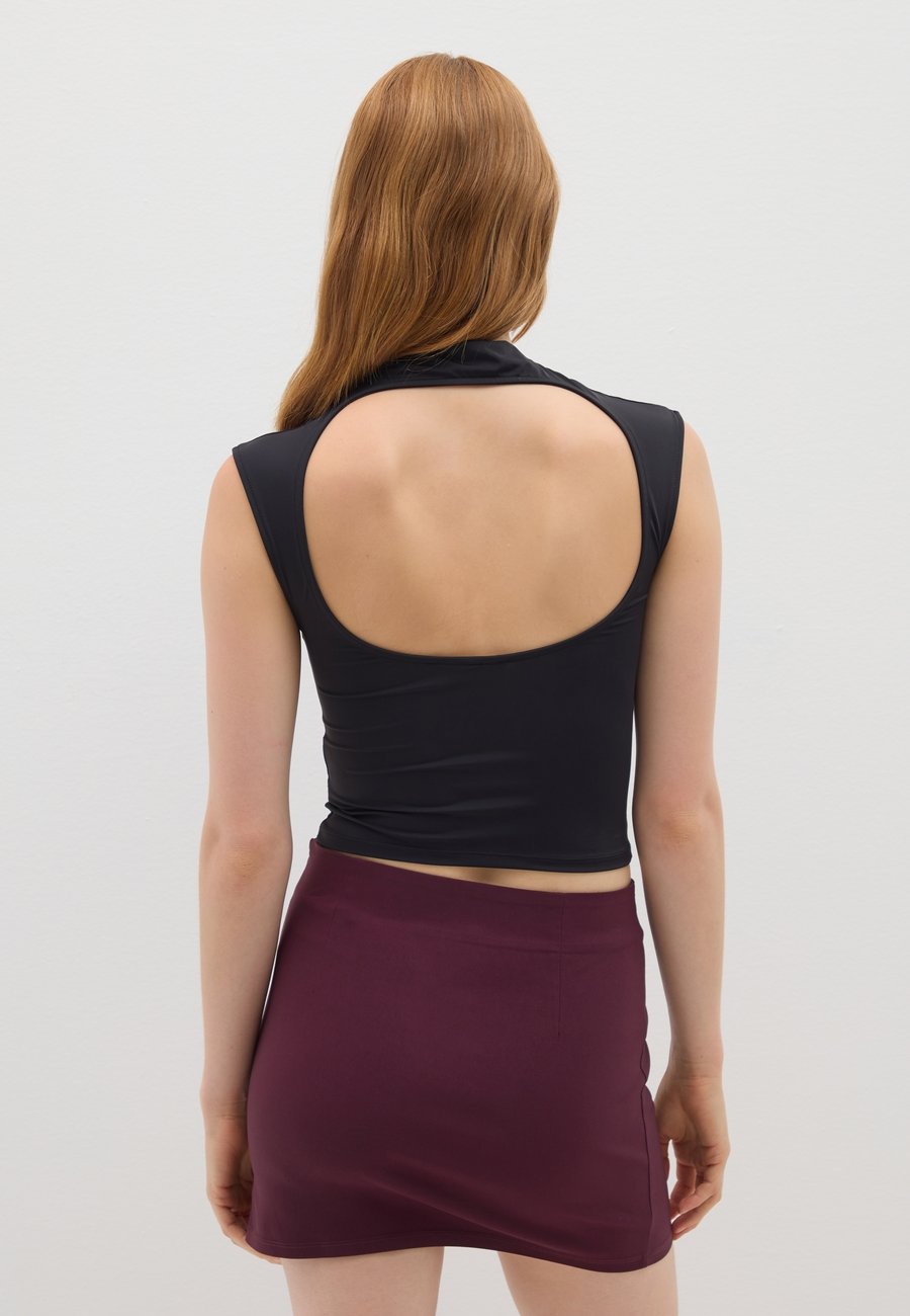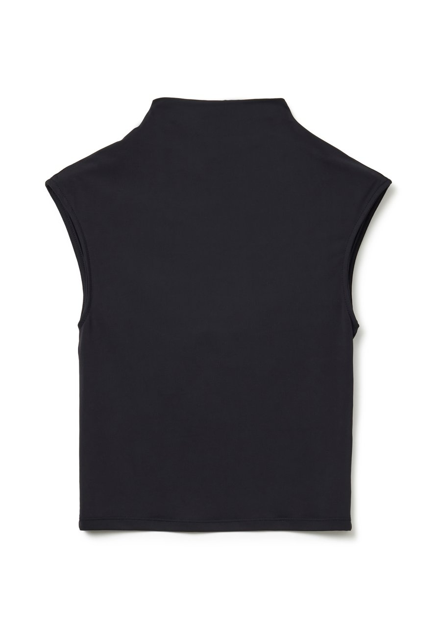 Элегантный черный топ без рукавов из легкой ткани B.Angel. Идеально подходит для того, чтобы добавить стиля в ваш осенне-зимний гардероб. Бесшовный дизайн обеспечивает комфорт и универсальность. Деталь с вырезом на спине. Вырез горловины: ХенлиМатериал и уход