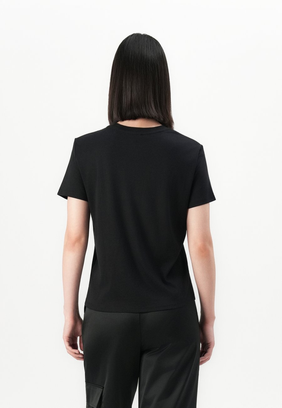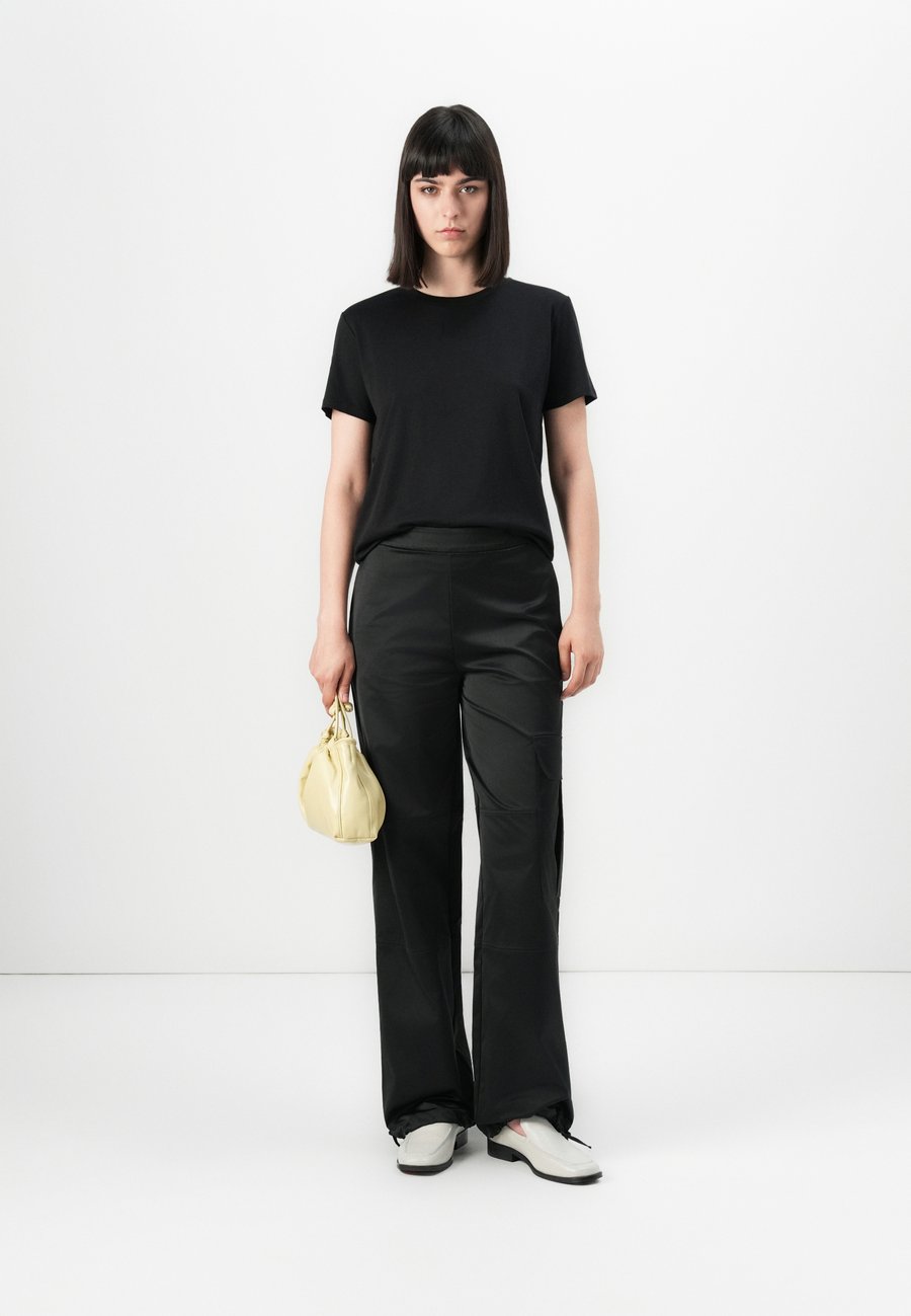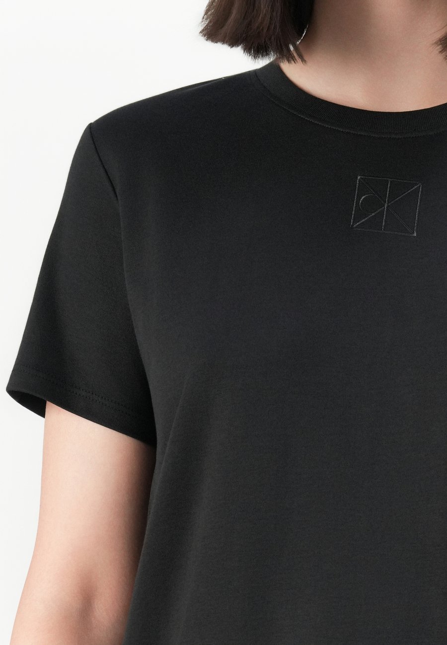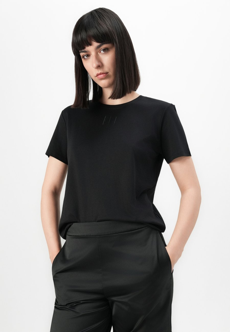 Небольшая этикетка-флажок на уровне груди. Вырез горловины: круглый.Материал и уход