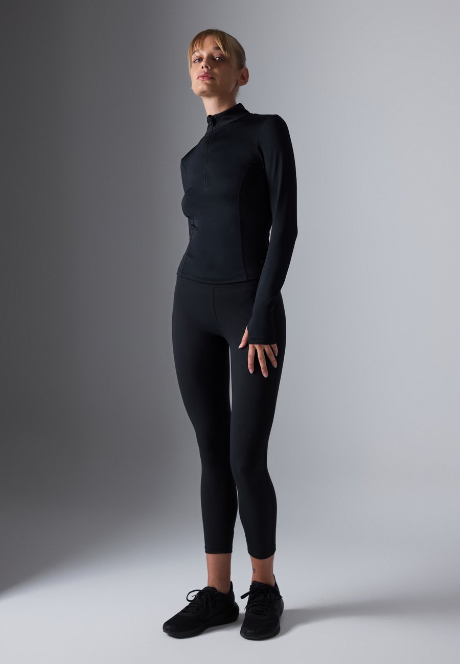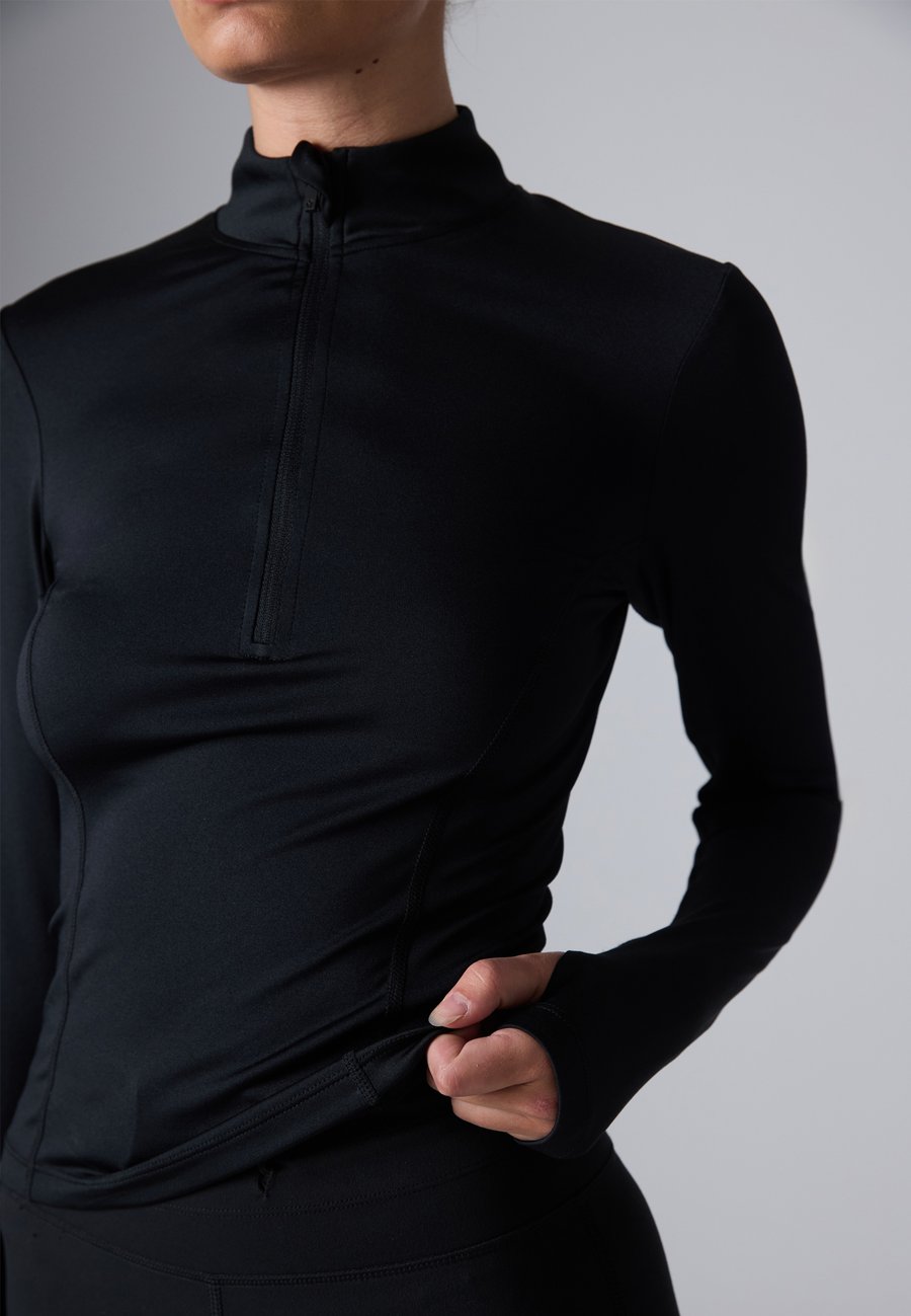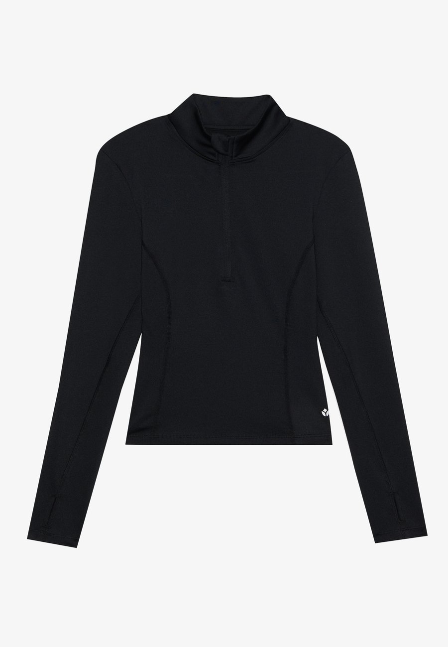 Топ Even&Odd active QUICK DRY LONG SLEEVE TOP WITH 1/2 ZIP AND THUMB HOLES, Black