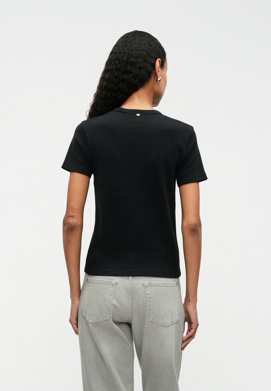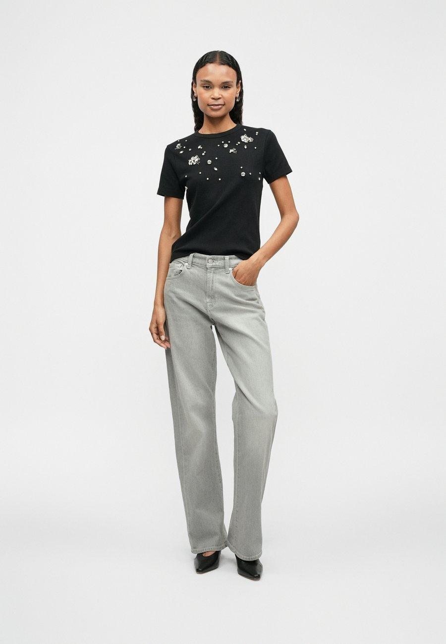 Эта черная футболка украшена сверкающими стразами по всей передней части, добавляя блеска классическому силуэту. Благодаря коротким рукавам и свободному крою ее легко носить и сочетать с другими вещами. Сочетайте его с джинсами для повседневного образа или наденьте с юбкой для вечернего выхода. Вырез: КруглыйМатериал и уход