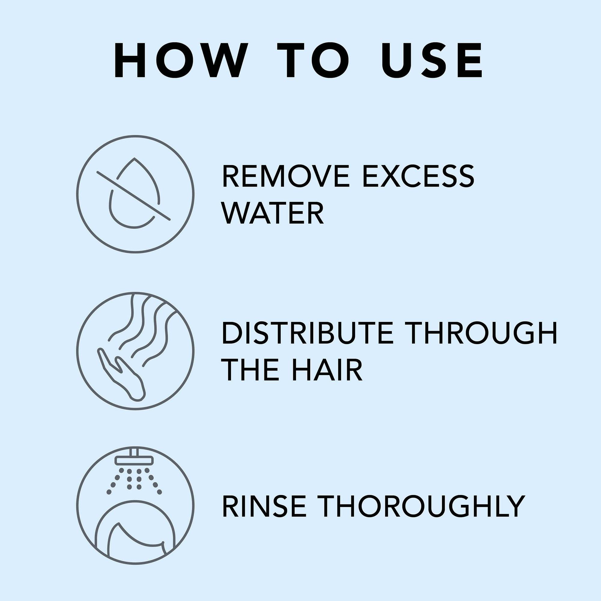 Удалите излишки воды с волос. Распределите по волосам, уделяя особое внимание кончикам. Тщательно смойте.Ингредиенты