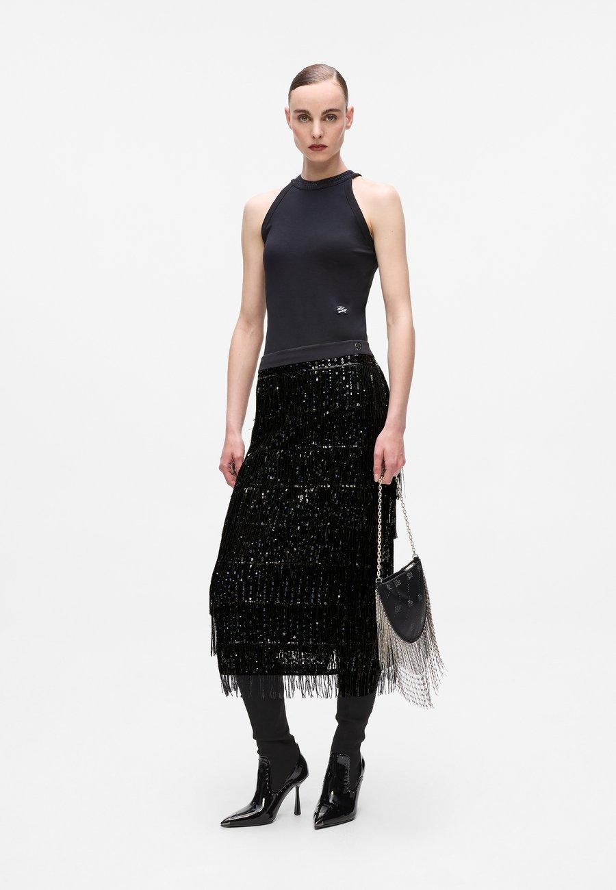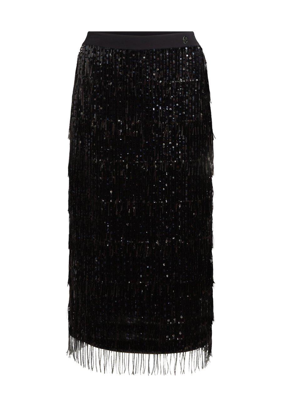 Детали: Эластичный пояс, пайетки, бахрома, нижняя юбка, отделкаМатериал и уход