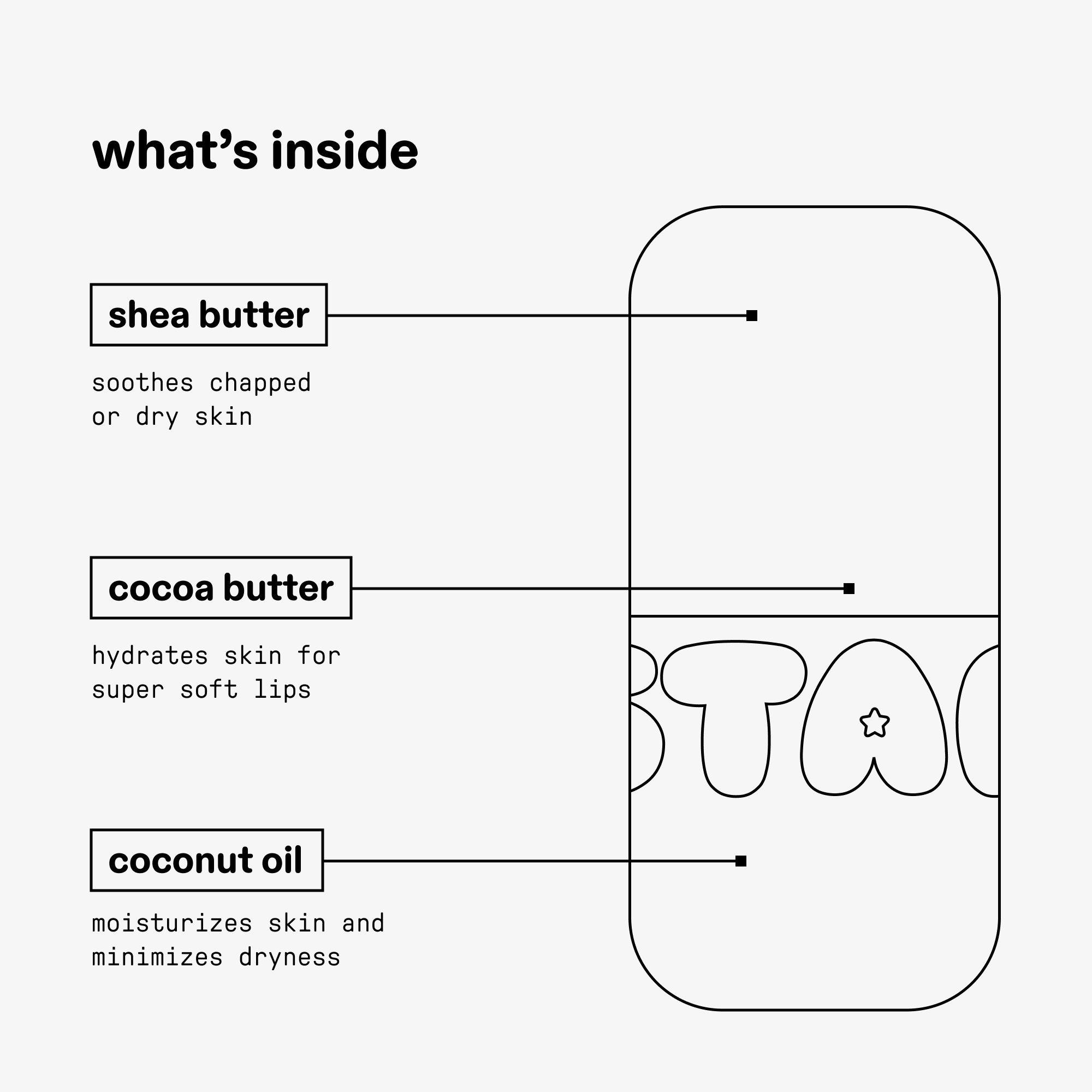 Нанесите бальзам Star Balm, чтобы успокоить и увлажнить губы. Когда бальзам закончится, промойте контейнер и сдайте его на переработку или используйте повторно.Ингредиенты