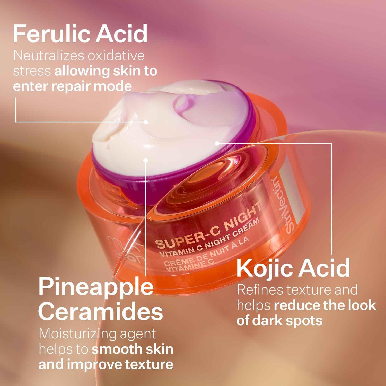 Water/Aqua/Eau, Trimethylolpropane Tricaprylate/Tricaprate, Propanediol, Caprylic/Capric Triglyceride, Caprylic/Capric/Myristic/Stearic Triglyceride, Dimethicone, Cetearyl Alcohol, 3-o-Ethyl Ascorbic Acid, Bis-Stearyl Dimethicone, Hydrogenated Ethylhexyl Olivate, Glyceryl Stearate, Pentaerythrityl Distearate, Cetyl Palmitate, Myristyl Nicotinate, Stearoxymethicone/Dimethicone Copolymer, Ferulic Acid, Kojic Dipalmitate, Acetyl Tetrapeptide-2, Trimethylpentanediol/Adipic Acid Copolymer, Ergothioneine, Ananas Sativus (Pineapple) Fruit Extract, Tephrosia Purpurea Seed Extract, Butyrospermum Parkii (Shea) Butter, Adenosine, 1,2-Hexanediol, PEG-40 Stearate, Polysilicone-11, Hydroxyethyl Acrylate/Sodium Acryloyldimethyl Taurate Copolymer, Ceteareth-20, Isohexadecane, Tetrahydrodiferuloylmethane, Fragrance (Parfum), Caprylhydroxamic Acid, Hydrogenated Olive Oil Unsaponifiables, Tocopheryl Acetate, Xanthan Gum, Disodium EDTA, Polysorbate 60, Cyclodextrin, Mannitol, Sorbitan Isostearate, Limonene, Aminomethyl Propanol, Linalool, Benzyl Benzoate, Geraniol, Yellow 5 (CI 19140), Red 40 (CI 16035) \\[ILN 231117\\].Доставка товаров осуществляется курьером или на пункт выдачи заказов.