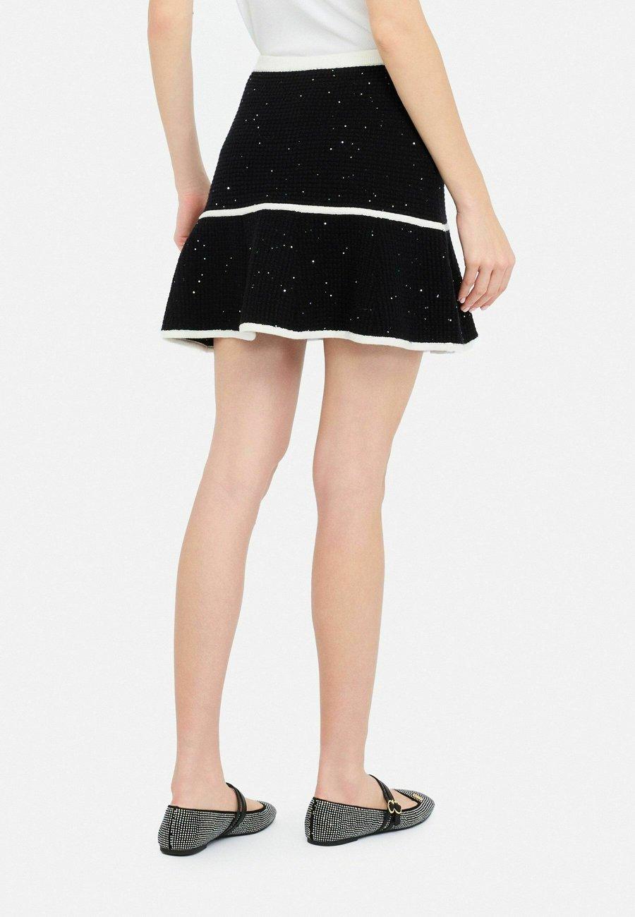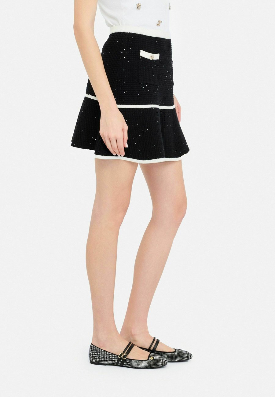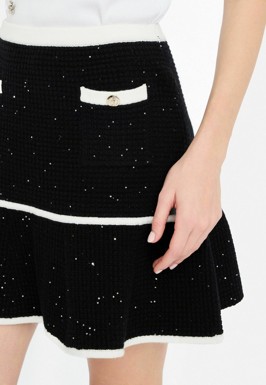 Детали: Эластичный пояс, пайетки, декоративные пуговицы, нижняя юбкаМатериал и уход
