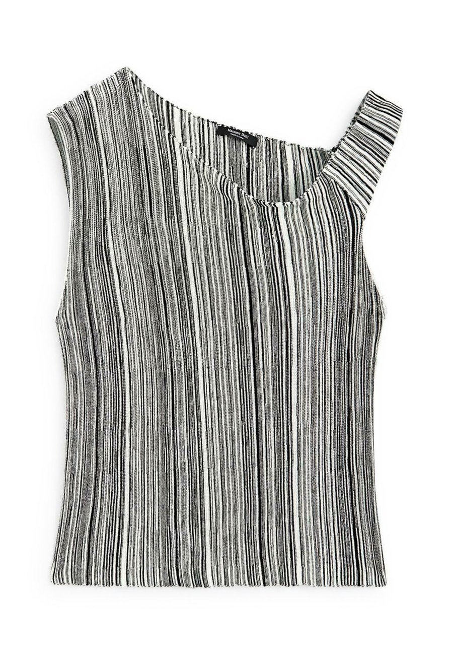 Топ с асимметричным вырезом. Полосатый принт. Без рукавов. В наличии подходящее изделие. Вырез: КвадратныйМатериал и уход