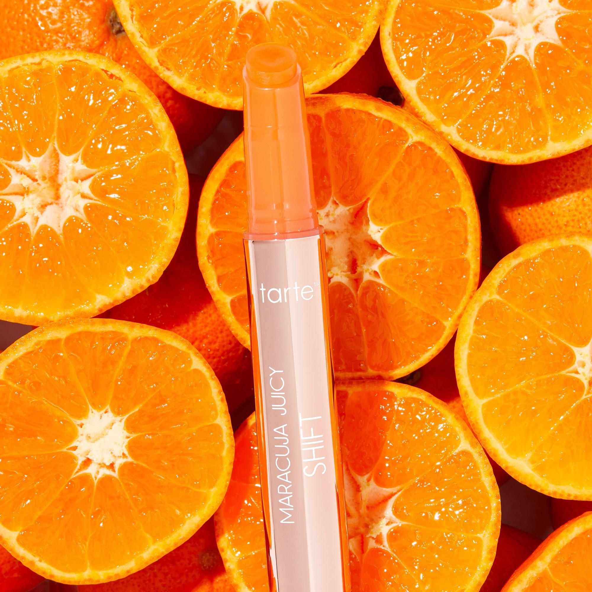 - Масло маракуйи: богато незаменимыми жирными кислотами и витамином С для более упругих, сияющих и гладких губ; масло виноградных косточек: антиоксидант и увлажняющее средство