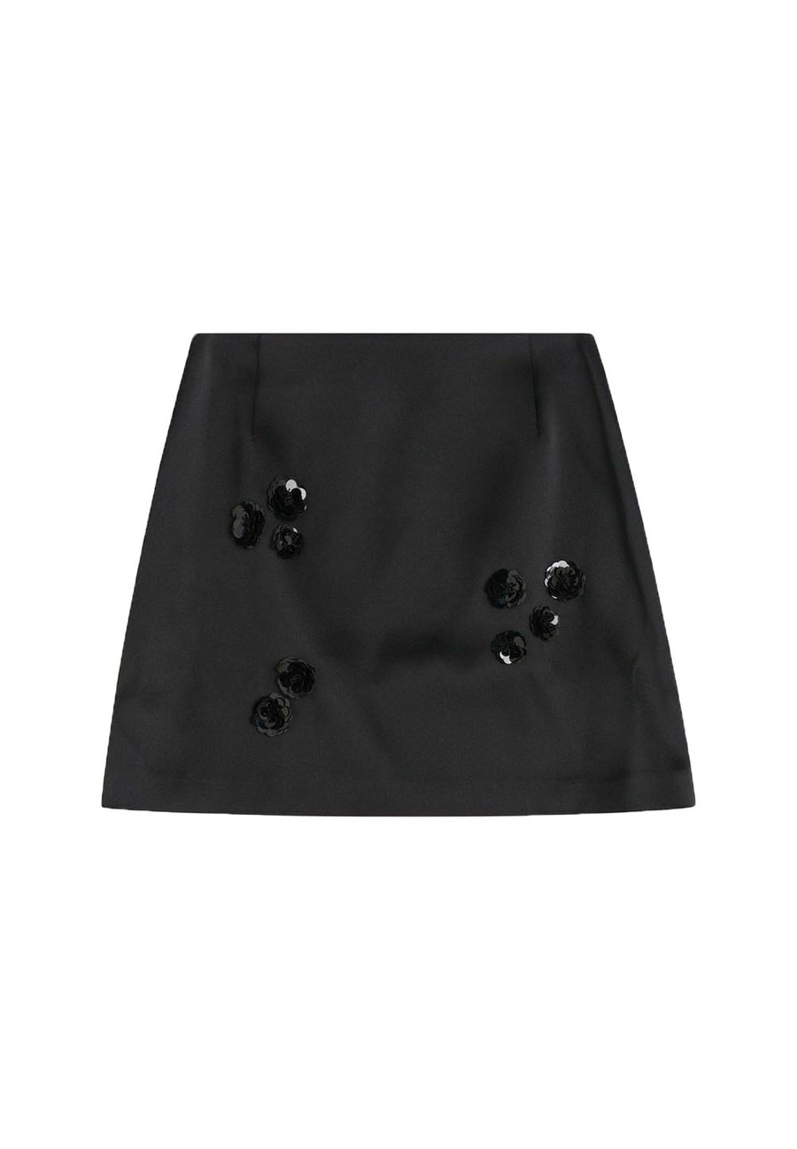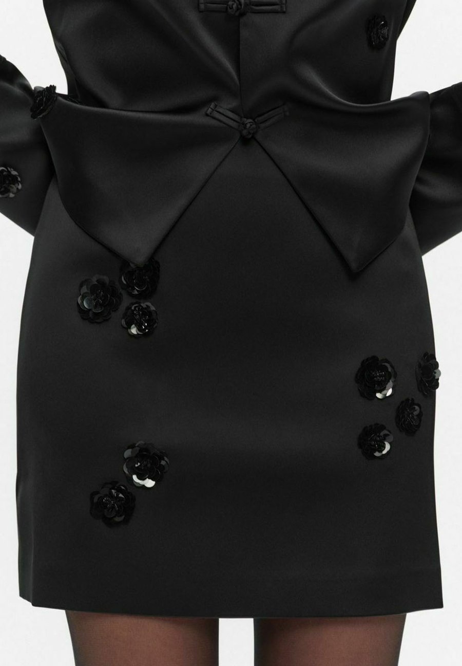 Юбка Justine от Stockh lm Studio - атласная мини-юбка прямого кроя, с застежкой-молнией сзади и декоративными цветочными аппликациями спереди. Сочетайте с блузкой-жакетом Justine для создания завершенного образа. Застежка: молнияМатериал и уход