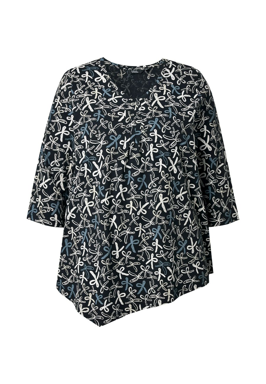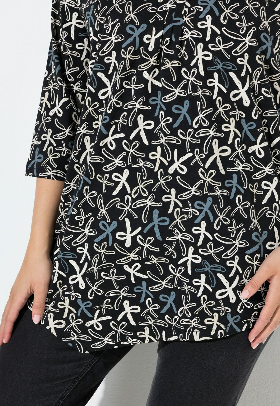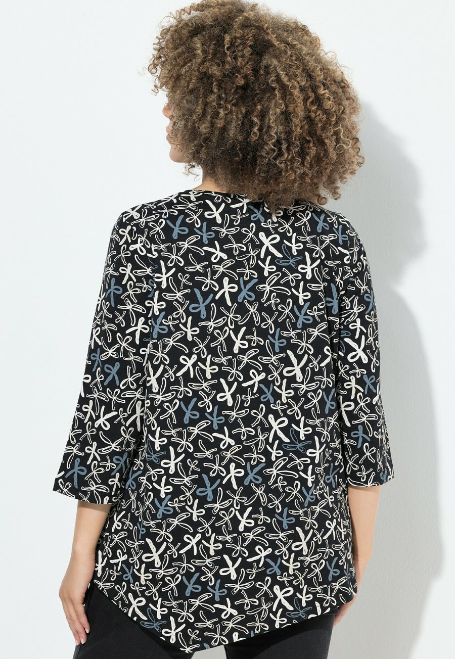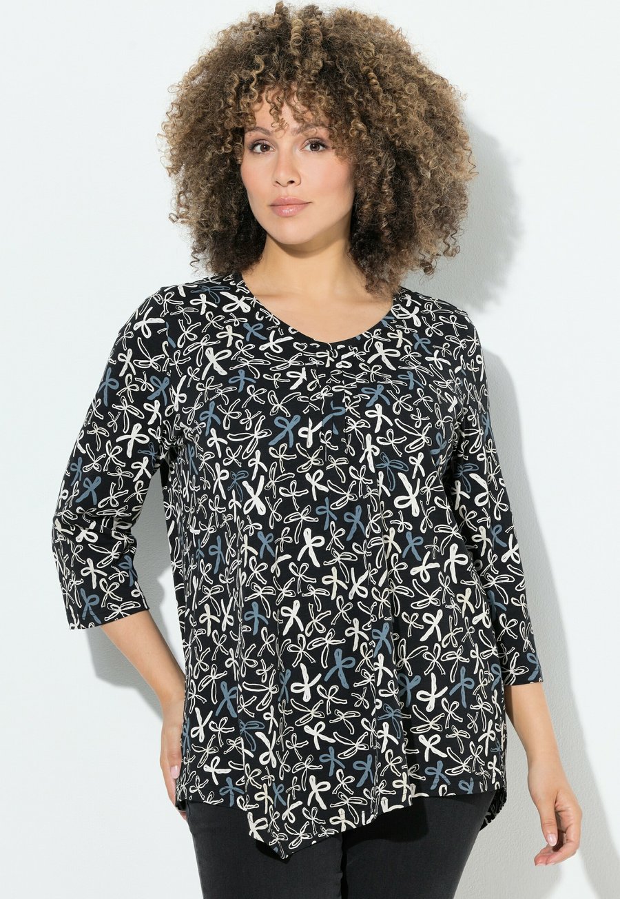 Топ Ulla Popken RIBBON PRINT 3/4 SLEEVE ASYMMETRIC , Black