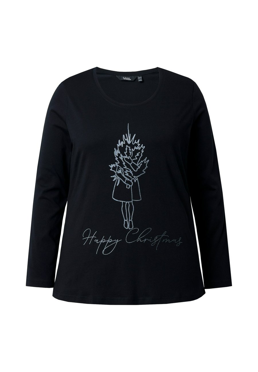 Топ Ulla Popken WEIHNACHTSMOTIV, CLASSIC, RUNDHALS, Black