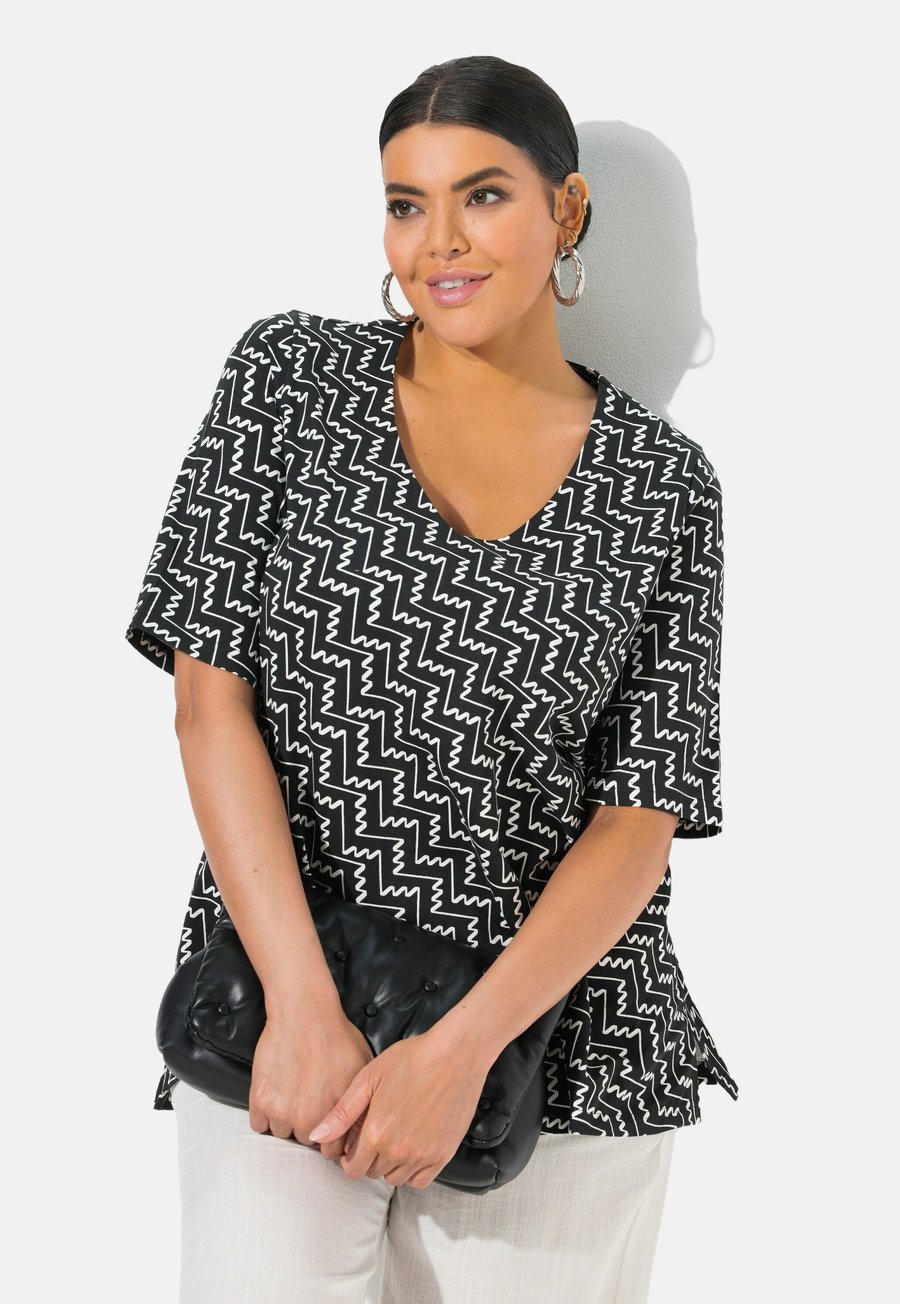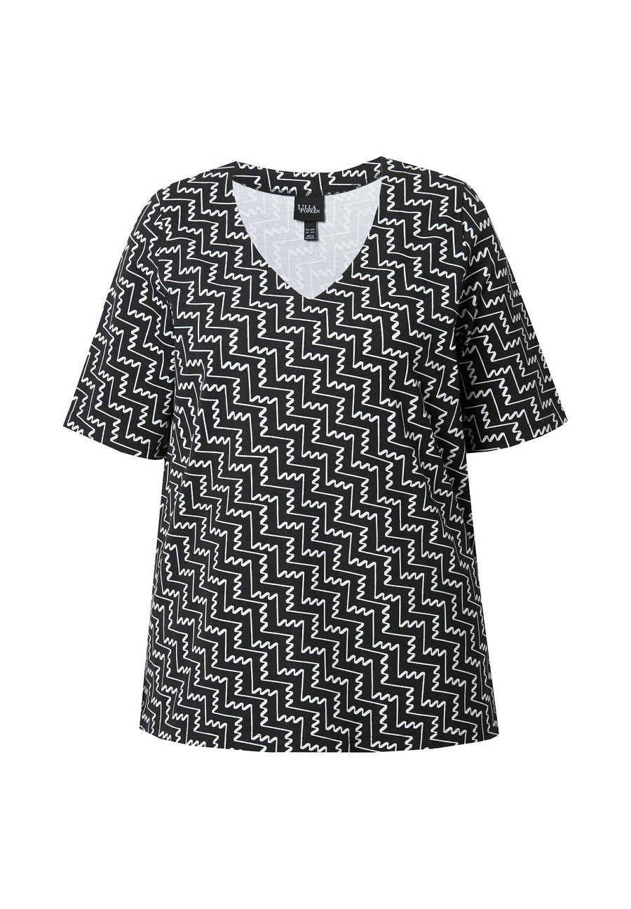 Футболка Ulla Popken ZIGZAG SHORT SLEEVE V-NECK , Black