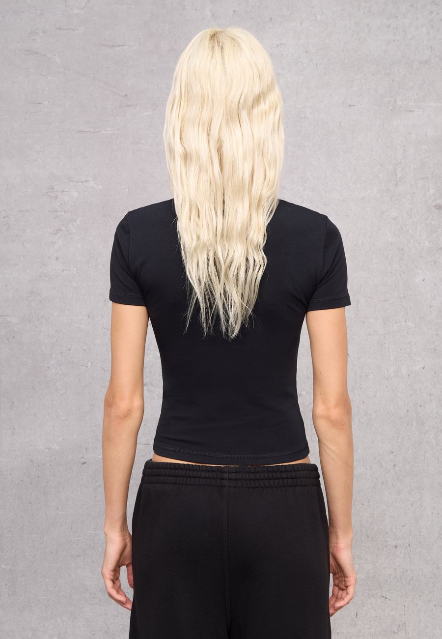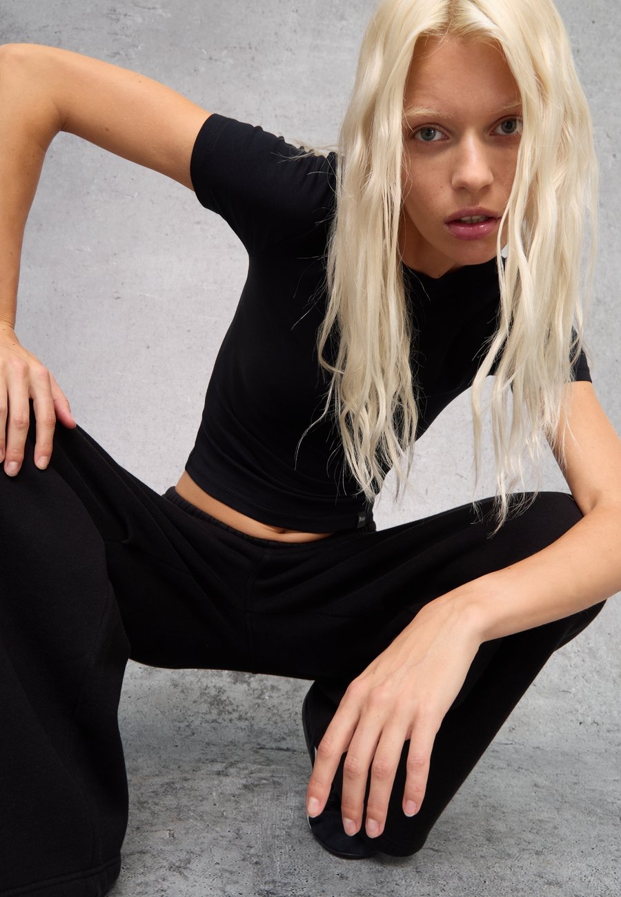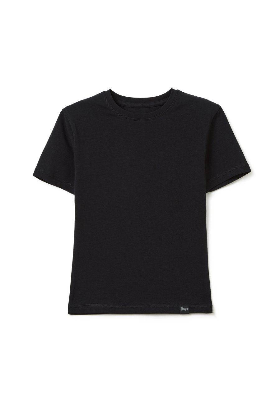 Черная футболка из эластичного хлопка от UTOPJA. Круглый вырез горловины. Швы в тон и логотип Utopja сбоку. Вырез горловины: круглый.Материал и уход