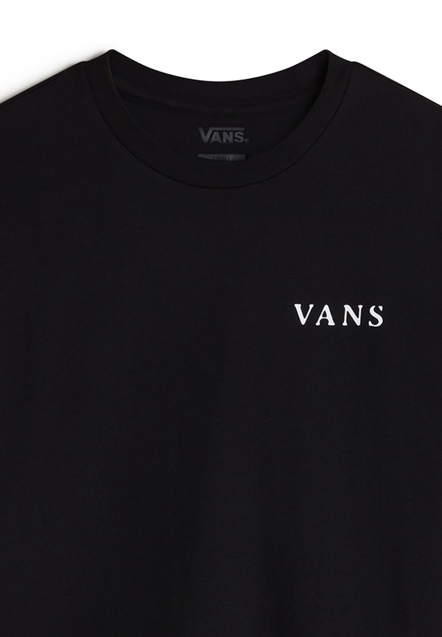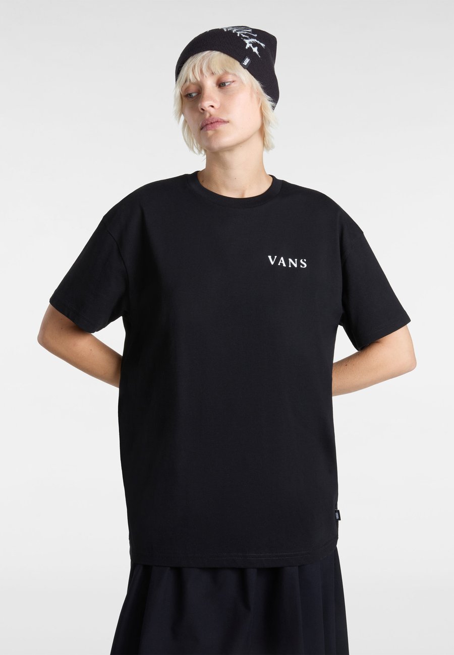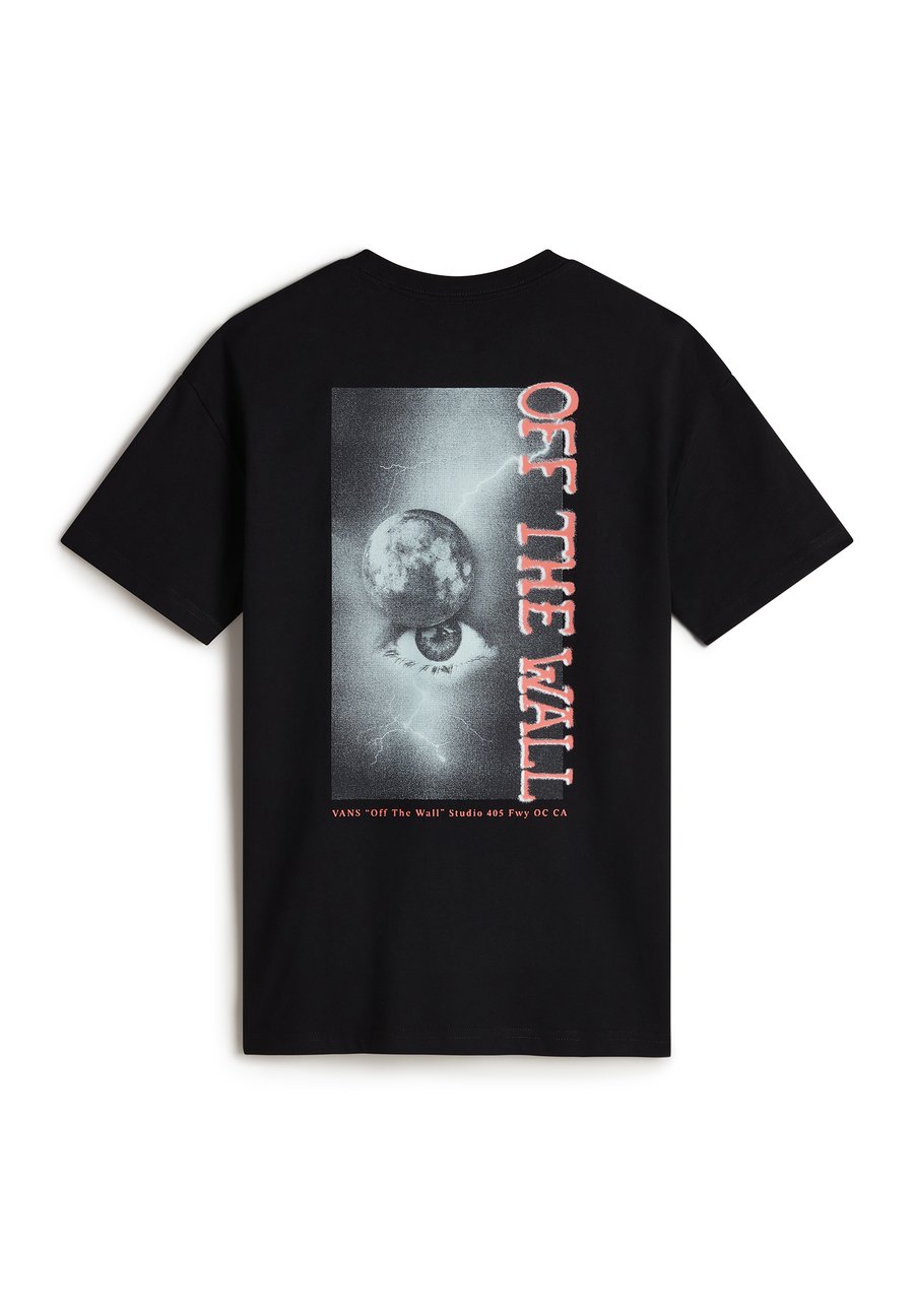 Футболка оверсайз Night Orb - женская футболка с графическим принтом. Цвет и состав материала: - Классический черный цвет с белым логотипом VANS на груди - Эффектный графический принт на спине с изображением луны и глаза в серых и розовых тонах - 100% плотный хлопковый трикотаж. Особенности посадки и комфорта: - Свободный силуэт оверсайз для максимального комфорта - Аккуратный круглый вырез с ребристым воротником - Спущенные плечи для повседневного стиля - Длина до середины бедра - Высококачественный хлопок 20/1 для долговечности. Футболка оверсайз Night Orb сочетает в себе фирменный стиль Vans и стильный базовый элемент гардероба. Эта футболка оверсайз сочетает в себе высококачественный плотный хлопок и уличный графический принт, что делает ее идеальной как для повседневного, так и для более нарядного стиля. Свободный крой и прочная ткань обеспечивают комфорт в течение всего дня, а загадочный рисунок луны и глаза добавляет художественной изюминки этой универсальной вещи. Вырез горловины: круглыйМатериал и уход