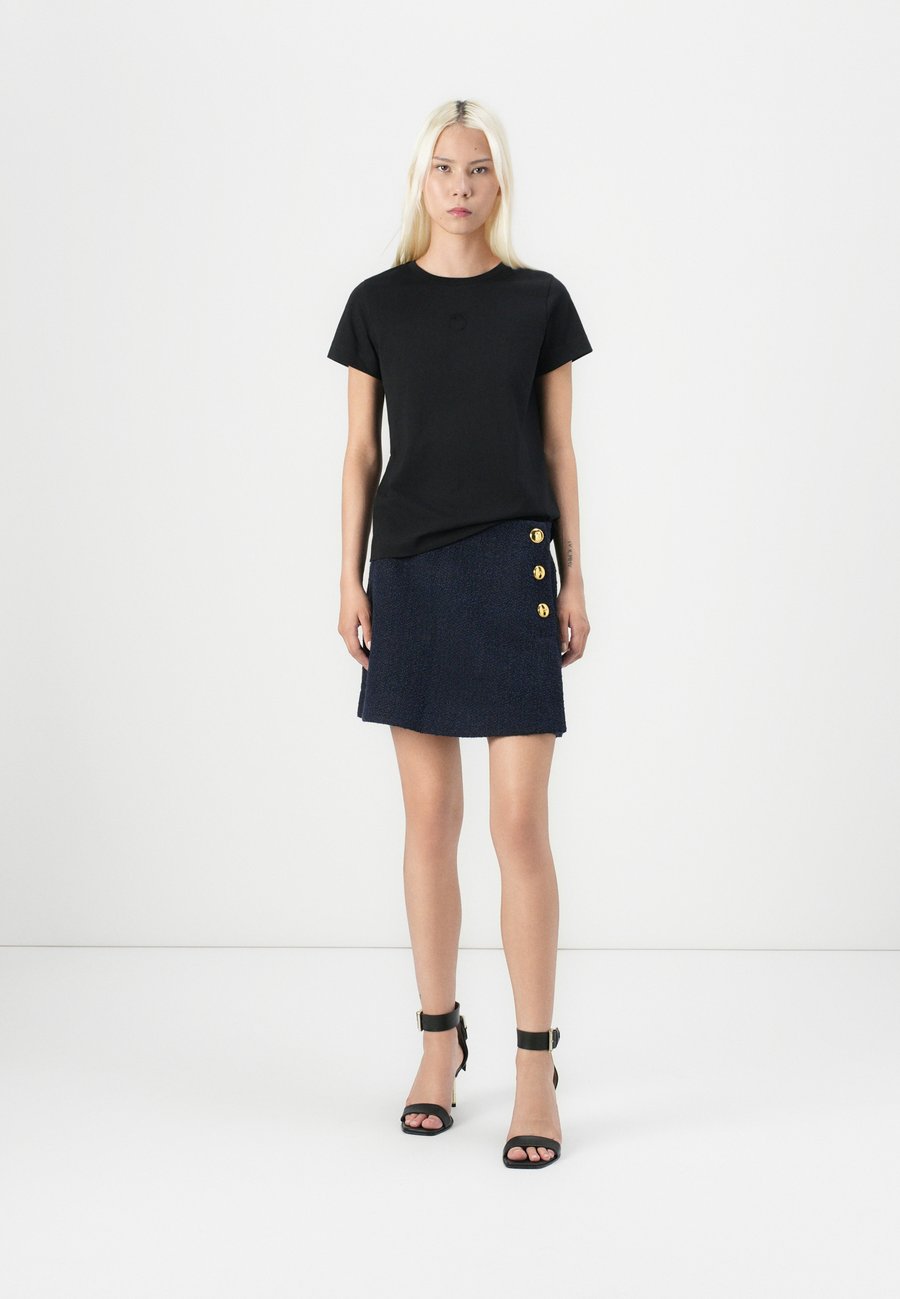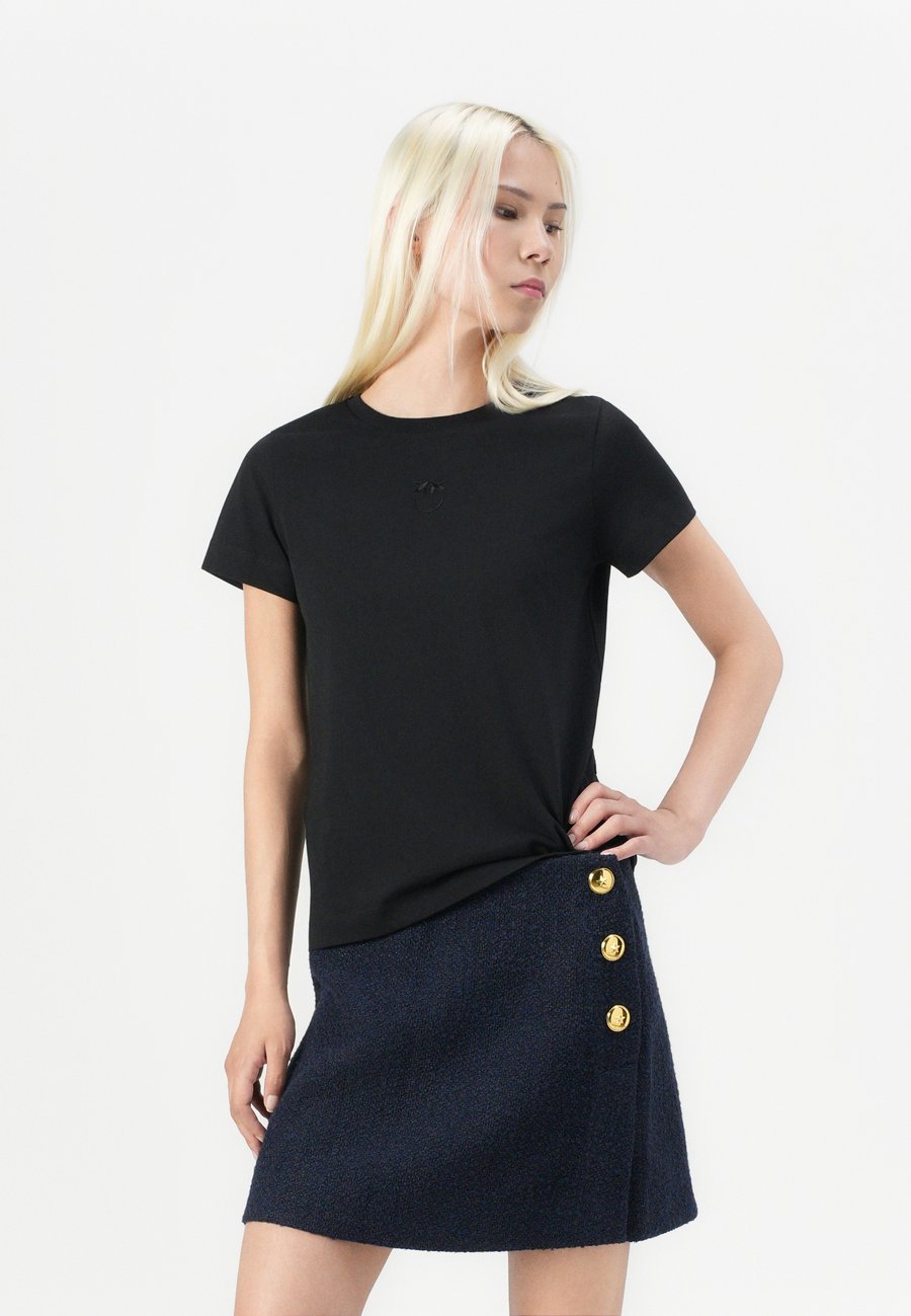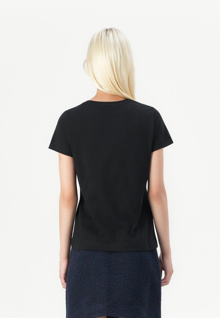 Небольшая этикетка-флажок на уровне груди. Вырез горловины: круглый.Материал и уход