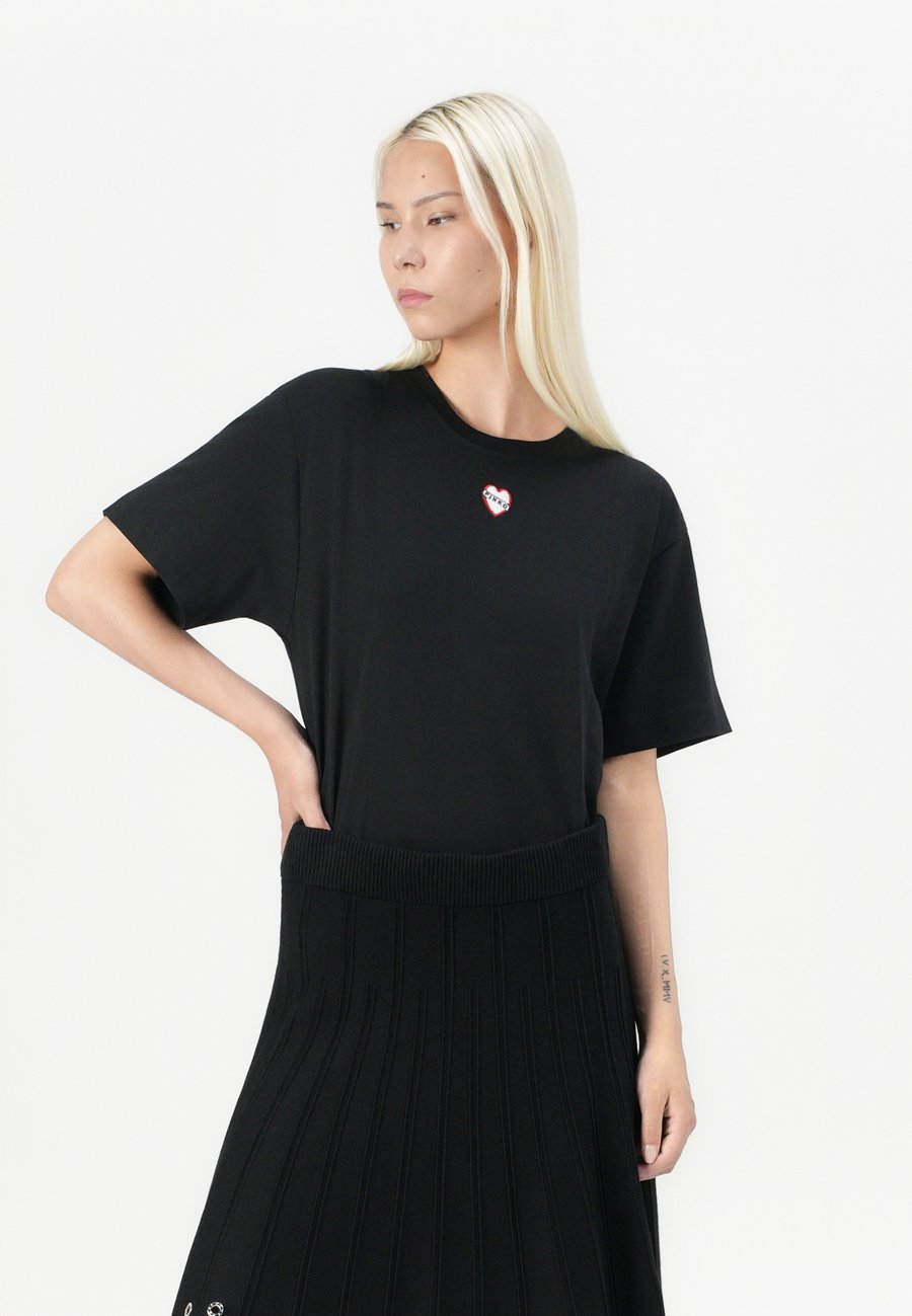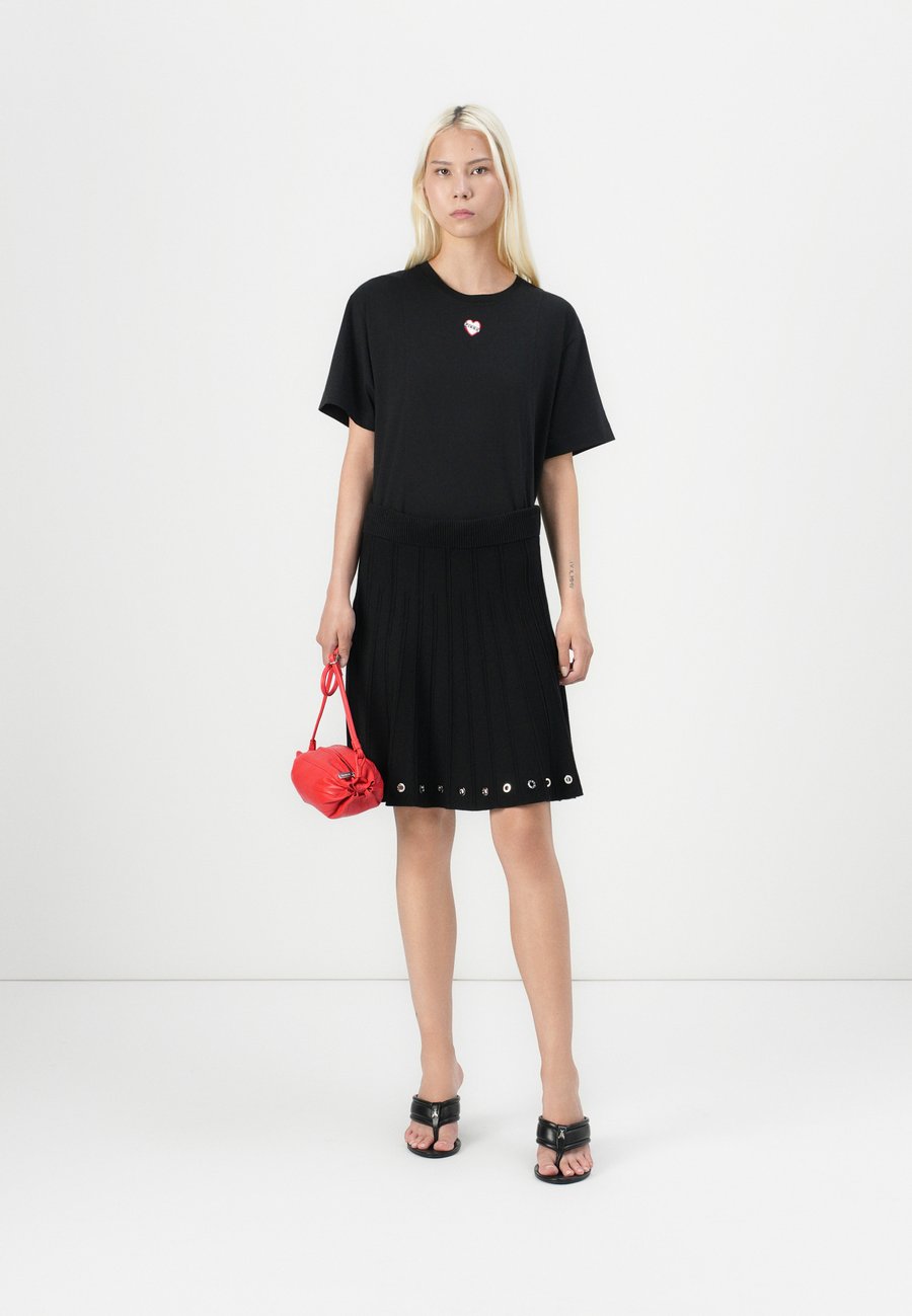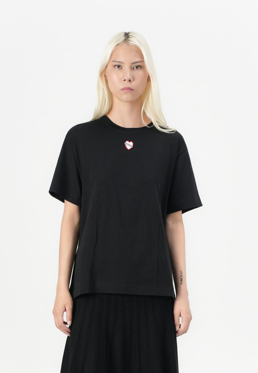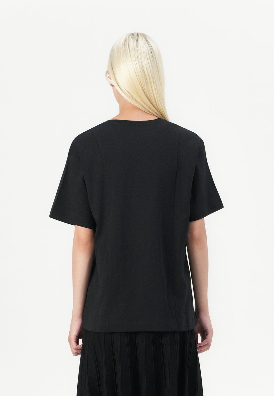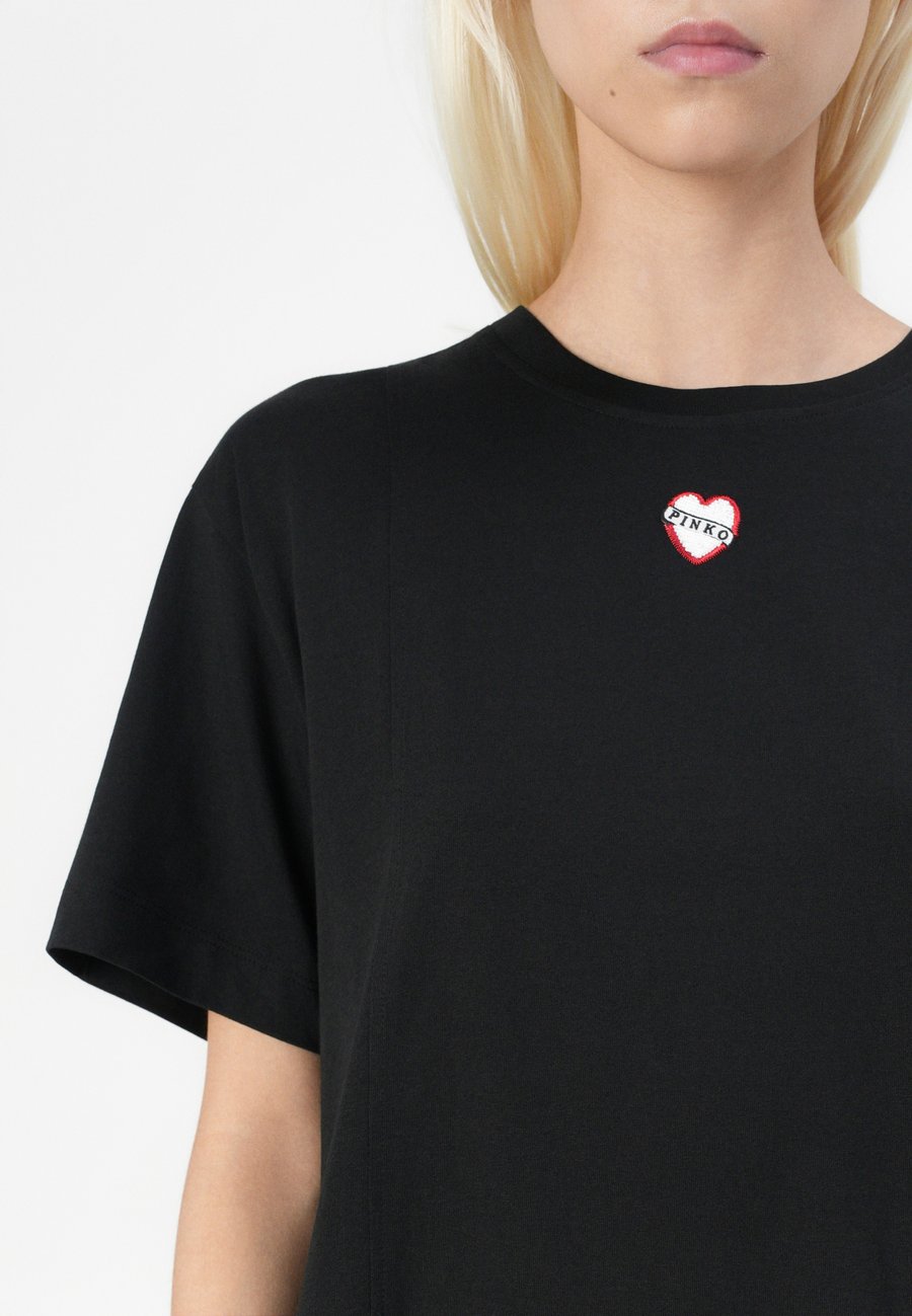 Небольшая этикетка-флажок на уровне груди. Вырез горловины: круглый.Материал и уход