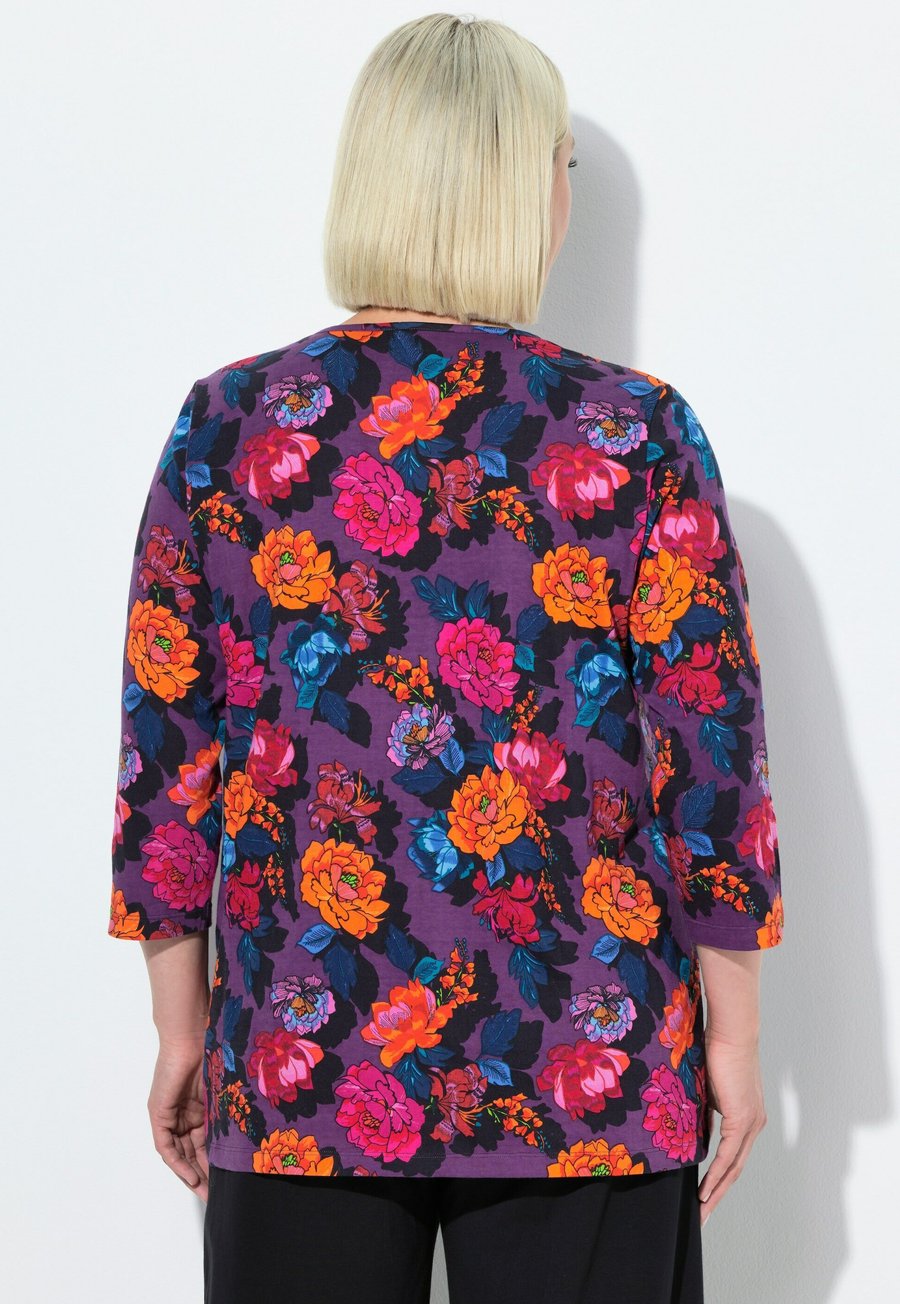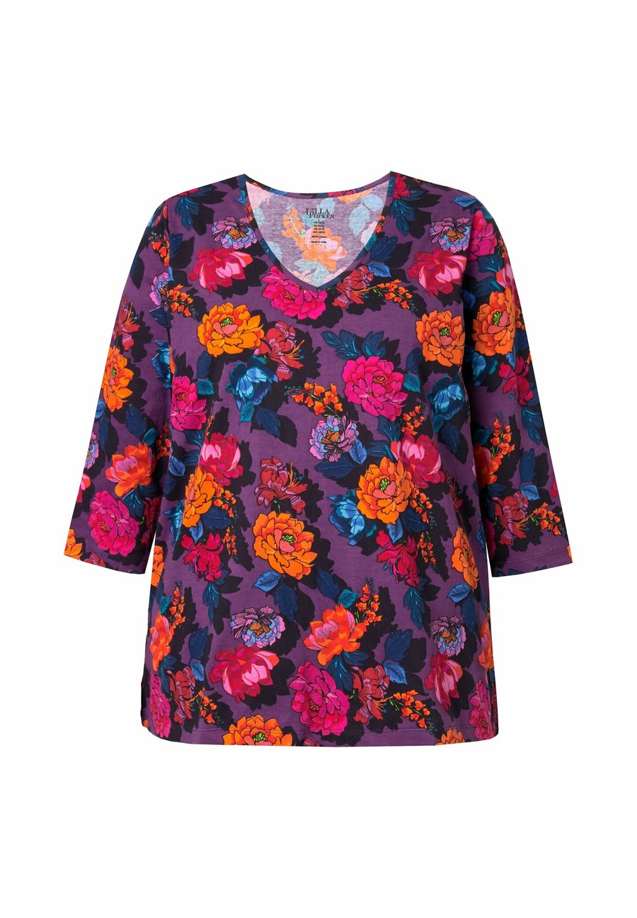 Топ Ulla Popken VIBRANT FLORAL EMPIRE 3/4 SLEEVE TEE, Black/Multi-Coloured