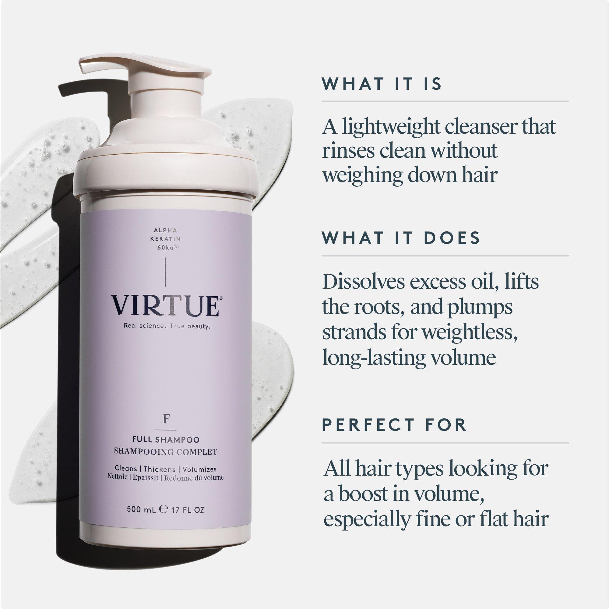 Вспеньте небольшое количество шампуня (размером с четверть чайной ложки) между ладонями. Нанесите на влажные волосы, помассируйте до образования обильной пены и смойте. Затем используйте кондиционер Full и тщательно смойте. СОВЕТЫ: Поскольку все шампуни Virtue являются концентрированными, мы рекомендуем эмульгировать шампунь на ладони с небольшим количеством воды и вспенить его перед нанесением на волосы.Ингредиенты