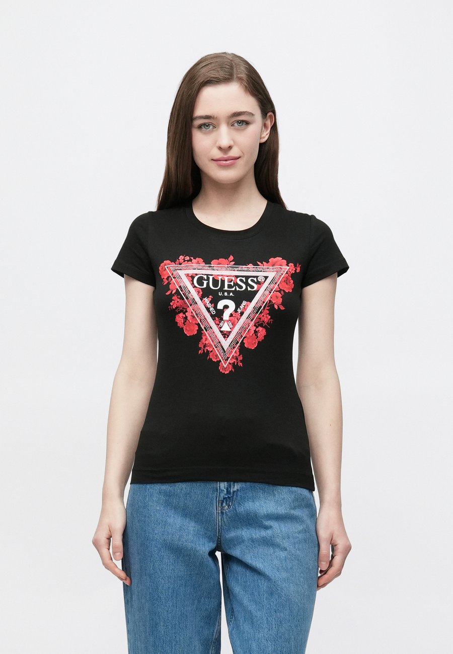 Футболка Guess FLOWERS TRIANGLE TEE, Jet Black/Black