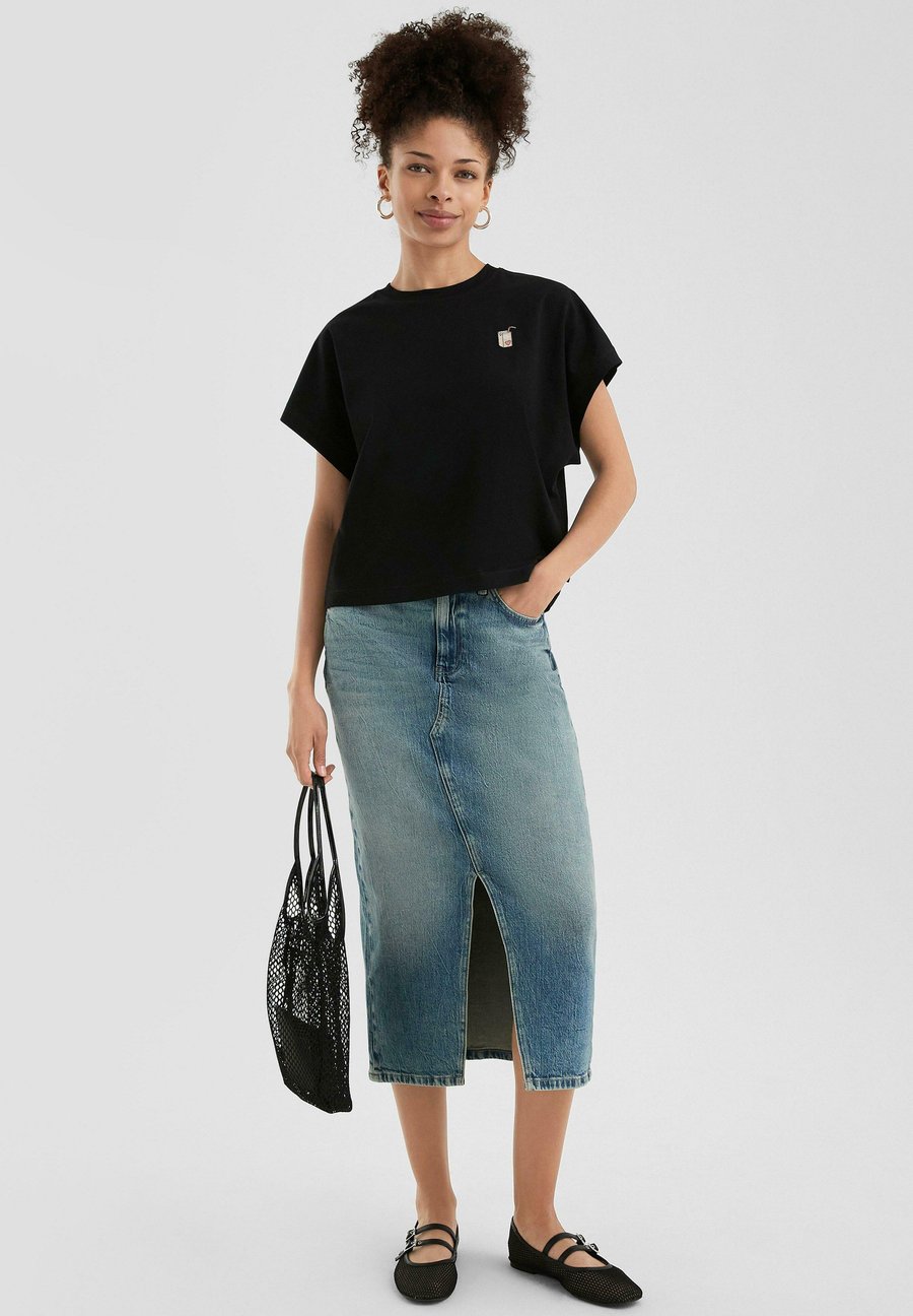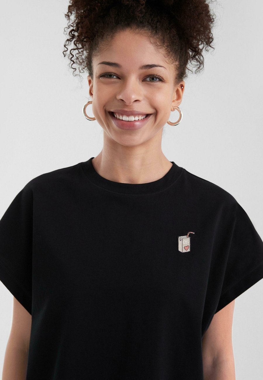 Футболка QS MIT KLEINER STICKEREI, Schwarz/Black