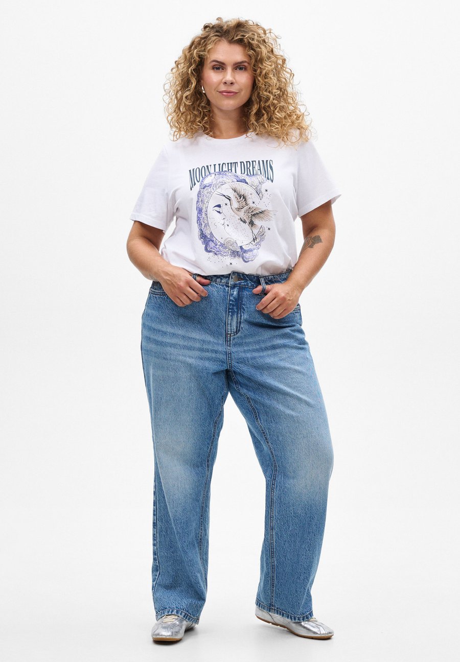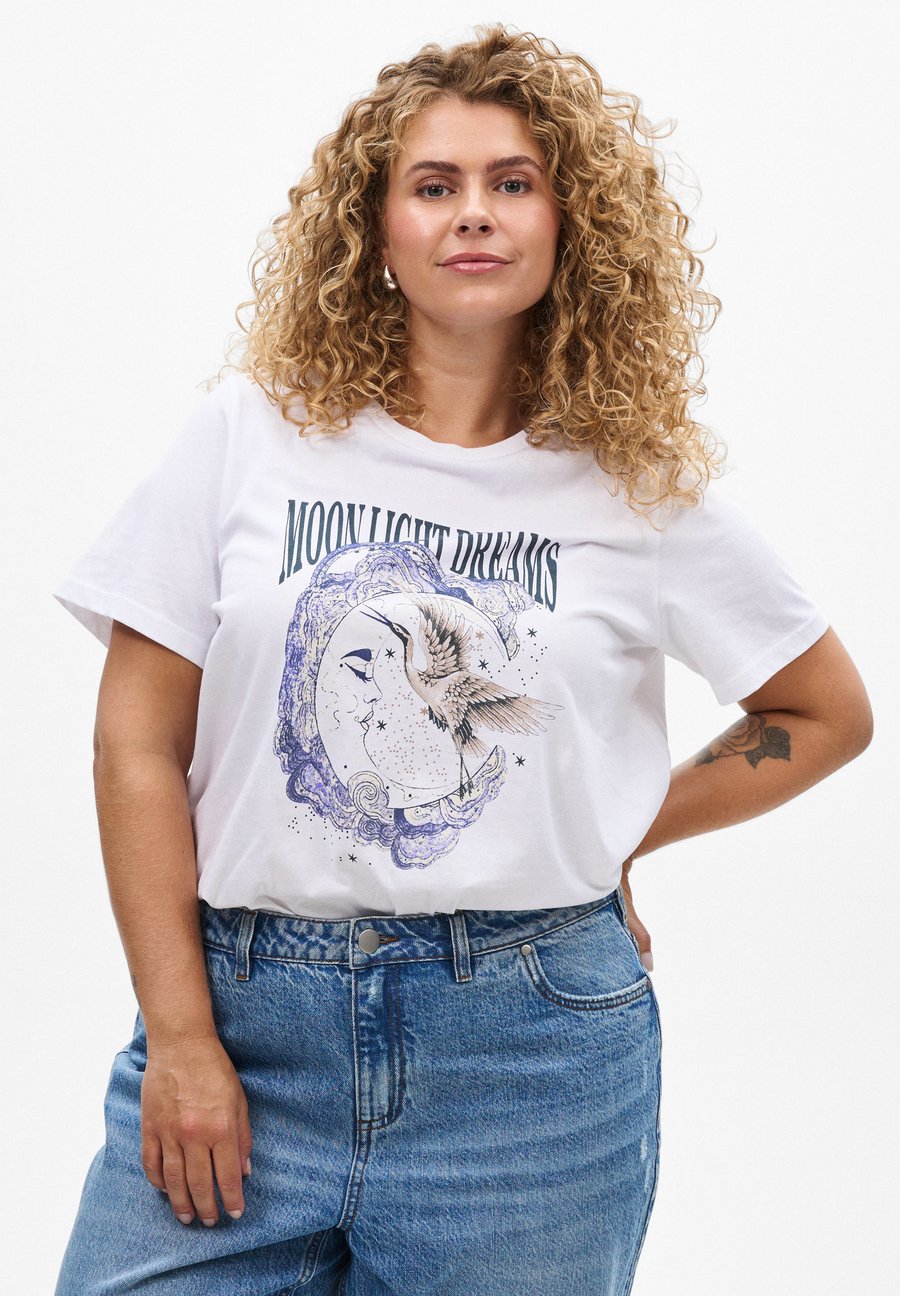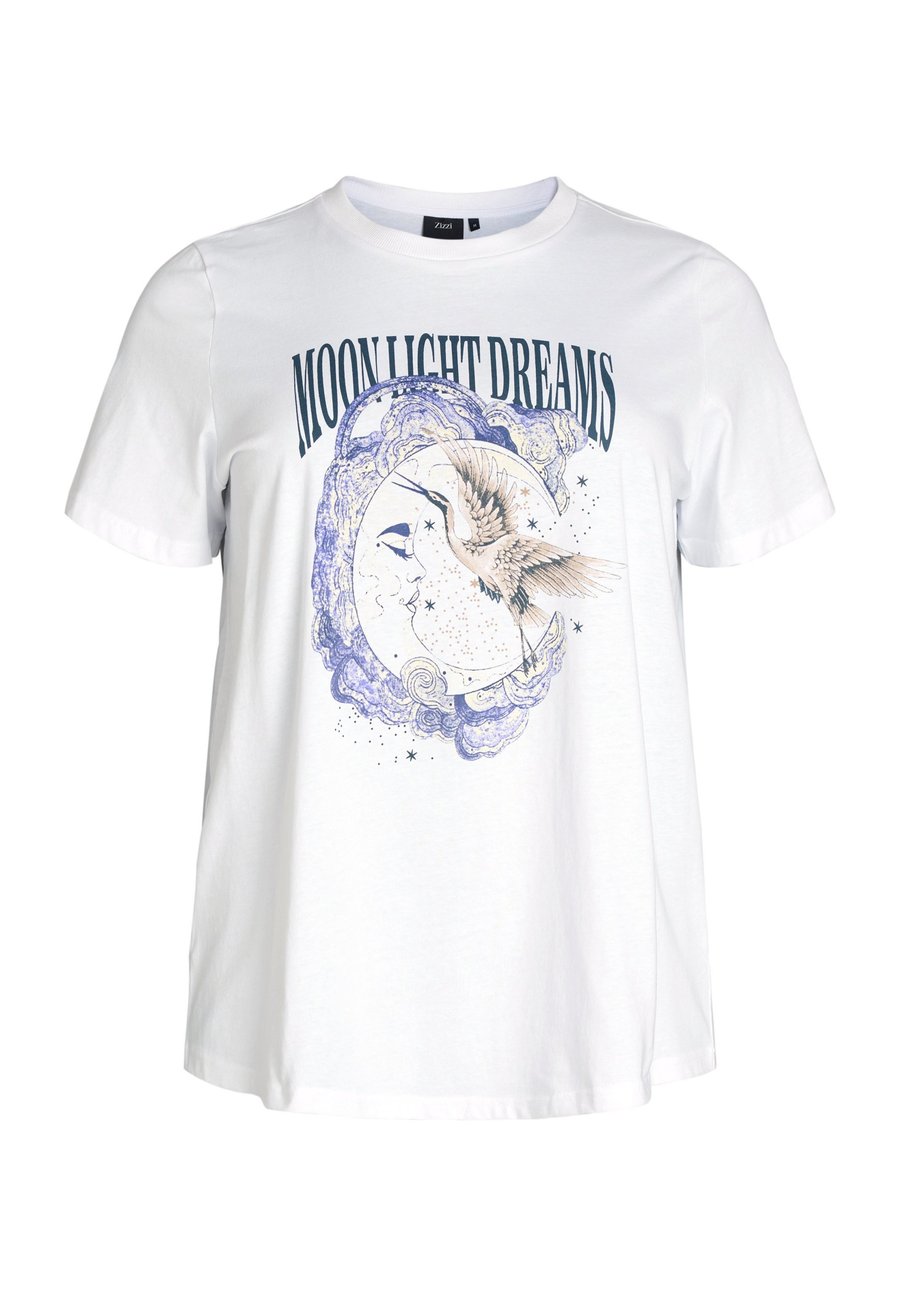 Футболка Zizzi AUF DER VORDERSEITE, Bright W W Moon/White