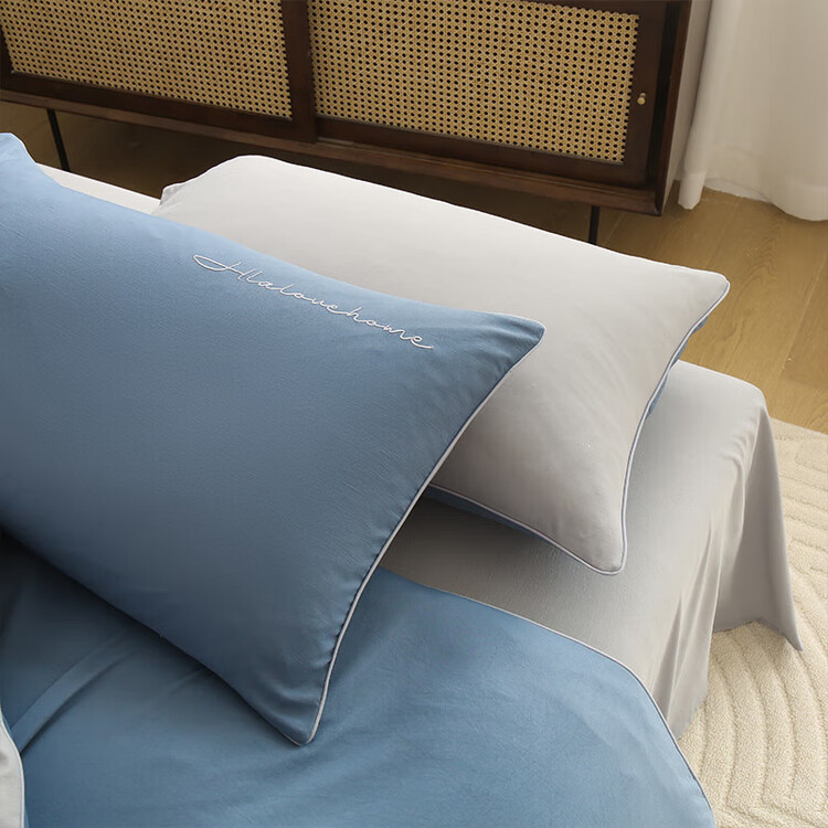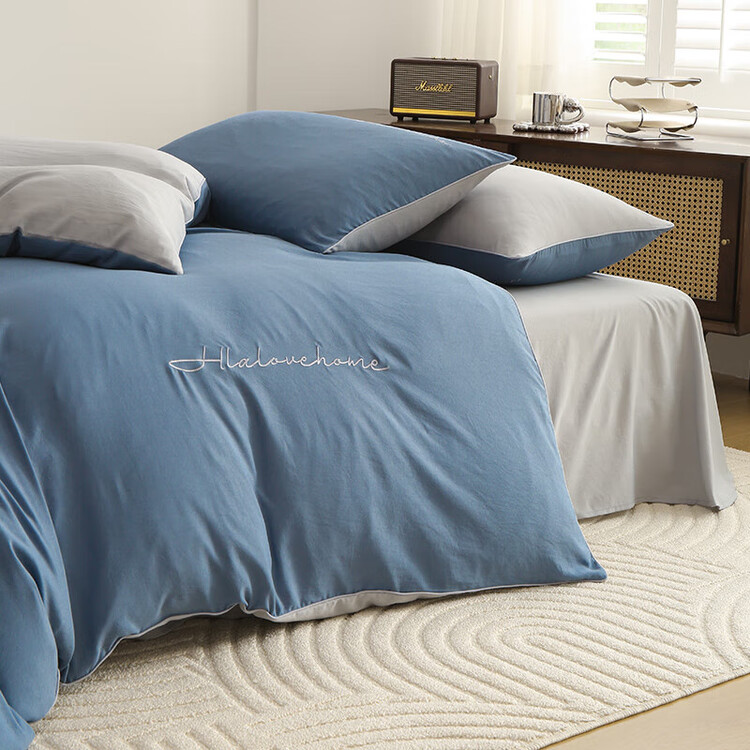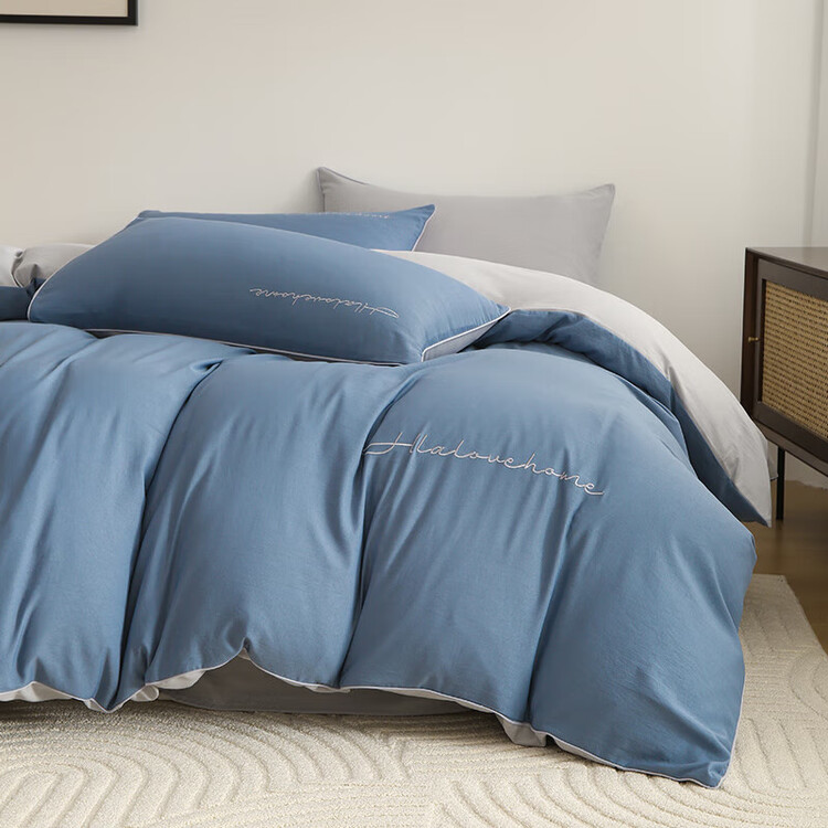 Aqua Blue with Light Gray [Class A Cotton Linen, Antibacterial And Anti-Mite]