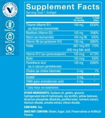 Комплекс витаминов B содержит полный спектр витаминов B для здоровья нервной системы, кожи, волос, мышечного тонуса. Сбалансированное сочетание незаменимых витаминов группы B. Обеспечивает питательную поддержку для энергии, стресса, умственной функции и здоровья сердца.