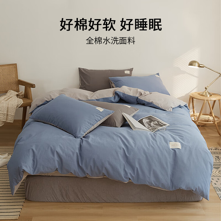 [A Class Antibacterial 100% Cotton] Four Seasons Style - Sapphire Blue + Light Gray