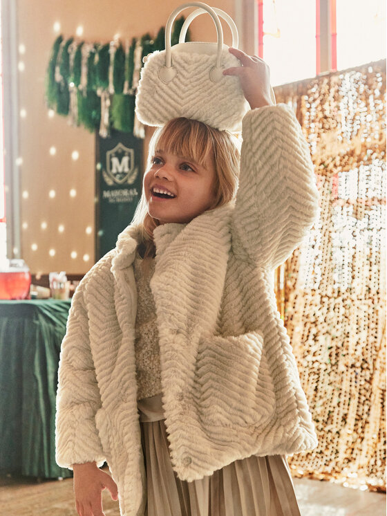 Меховое пальто regular fit 4441 Mayoral, бежевый 7 464₽