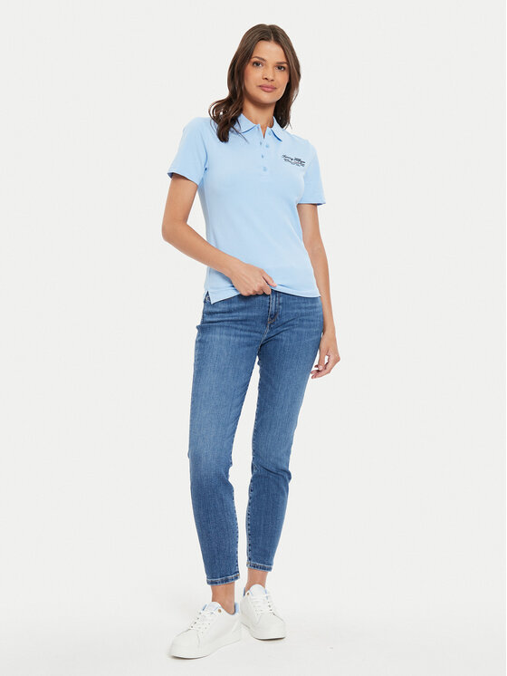 Поло slim fit Script WW0WW43624 Tommy Hilfiger, голубой