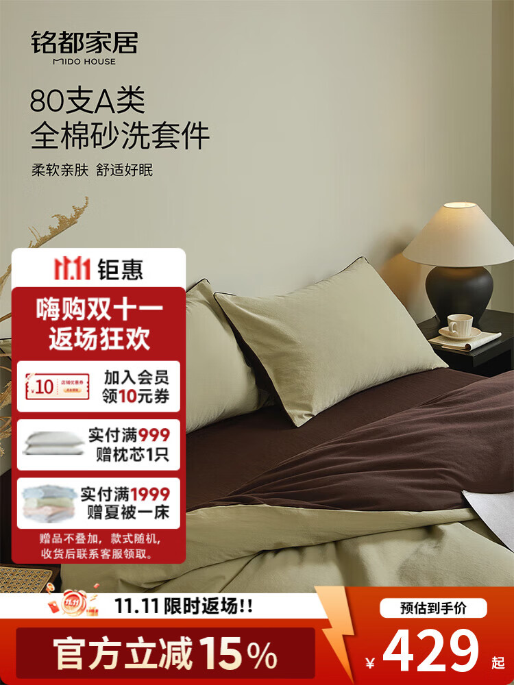 Reed Color with Chestnut Shell Color [80 Pieces A-Class Pure Cotton - Sand Washing Process] Shanhai