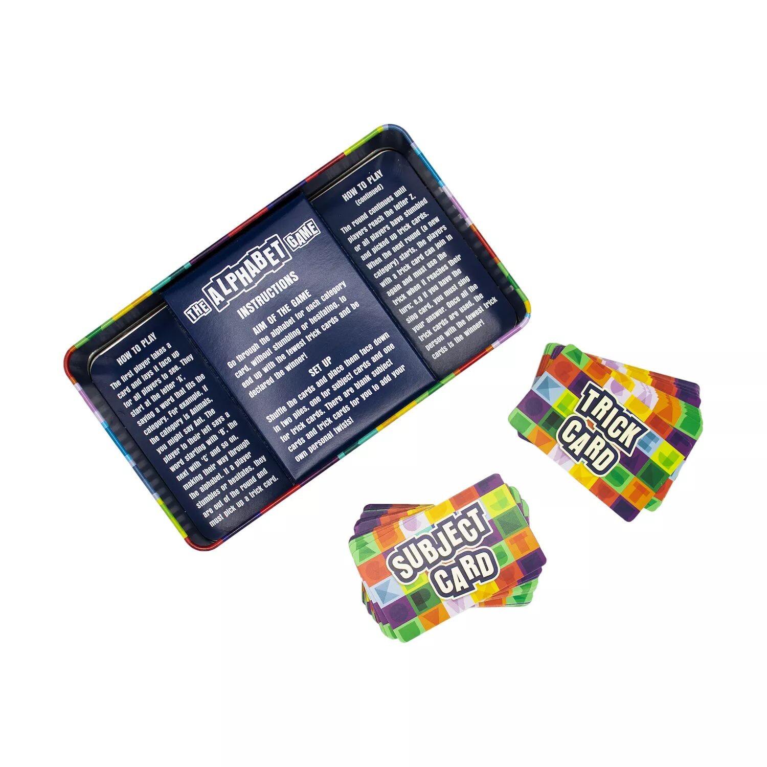Получите удовольствие от этой игры на крыльце The Alphabet Game Tin.