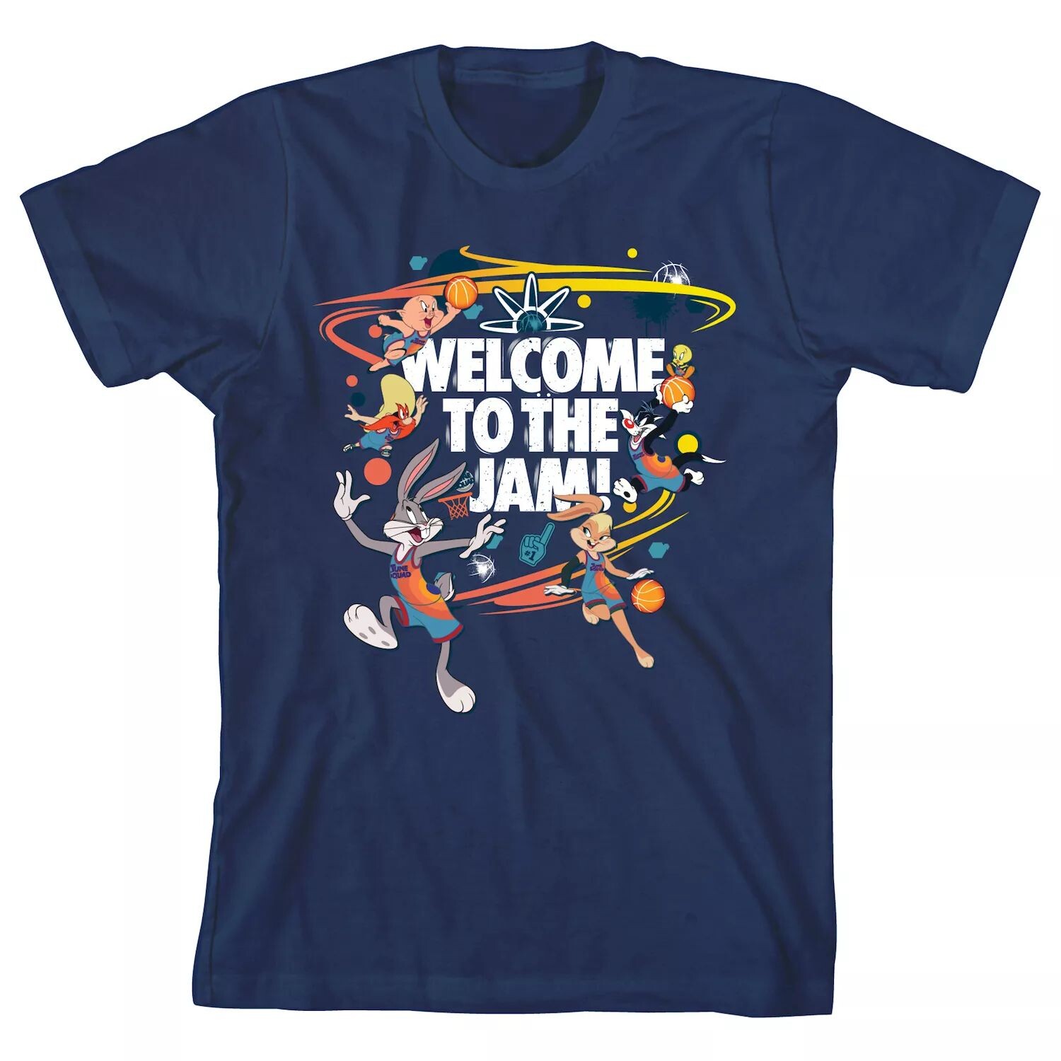 Ему понравится демонстрировать свою любимую франшизу и стиль в этой футболке с рисунком Space Jam 2 Welcome Jam для мальчиков.