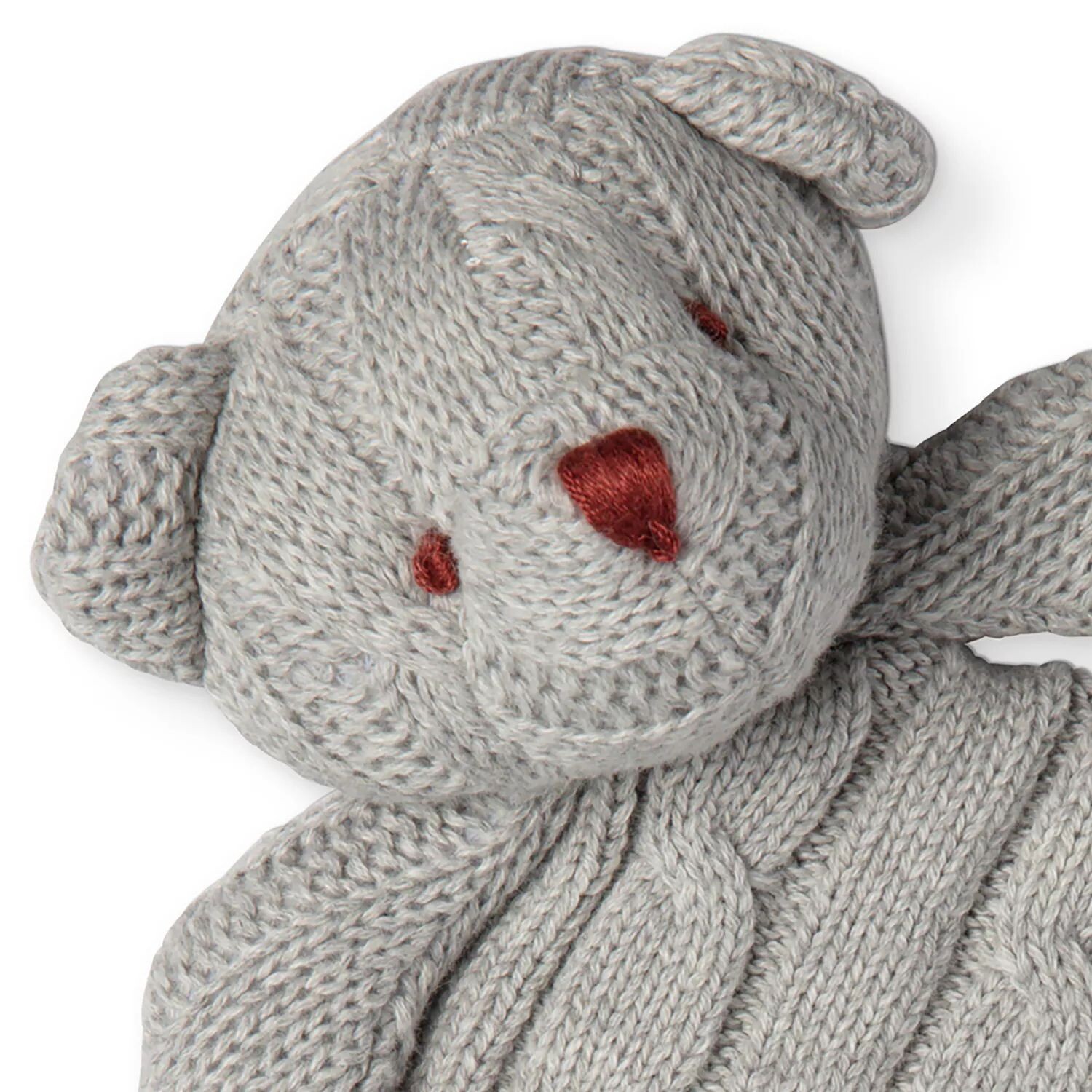Из центра выглядывает плюшевый игрушечный мишка, придающий этому мягкому трикотажному защитному одеялу дополнительный шарм. Изготовлен из мягкого хлопка косичной вязки и доступен в белом, синем, розовом или сером цвете.