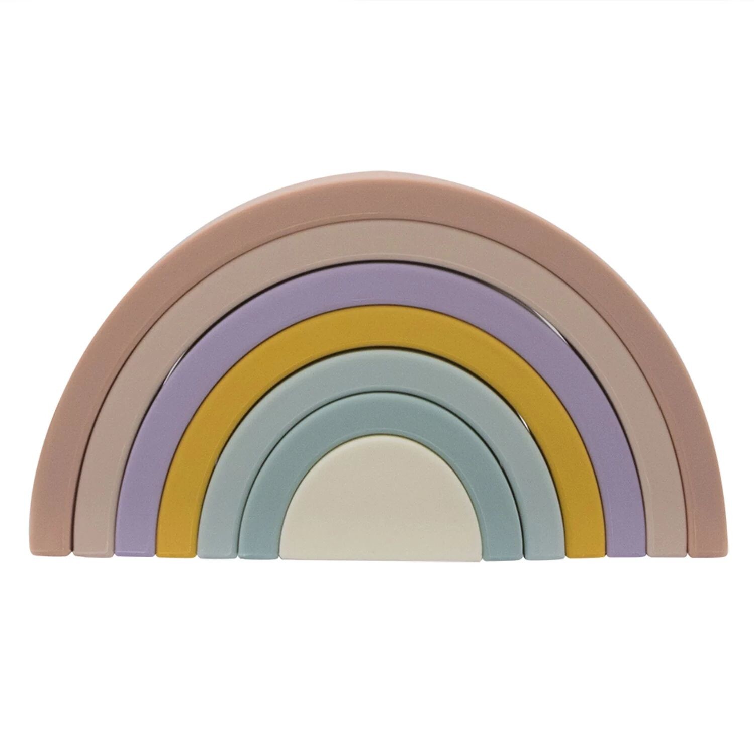 Ваш малыш сможет строить радуги, башни, арки и скульптуры с помощью этого красочного радужного штабеля от Playground.
