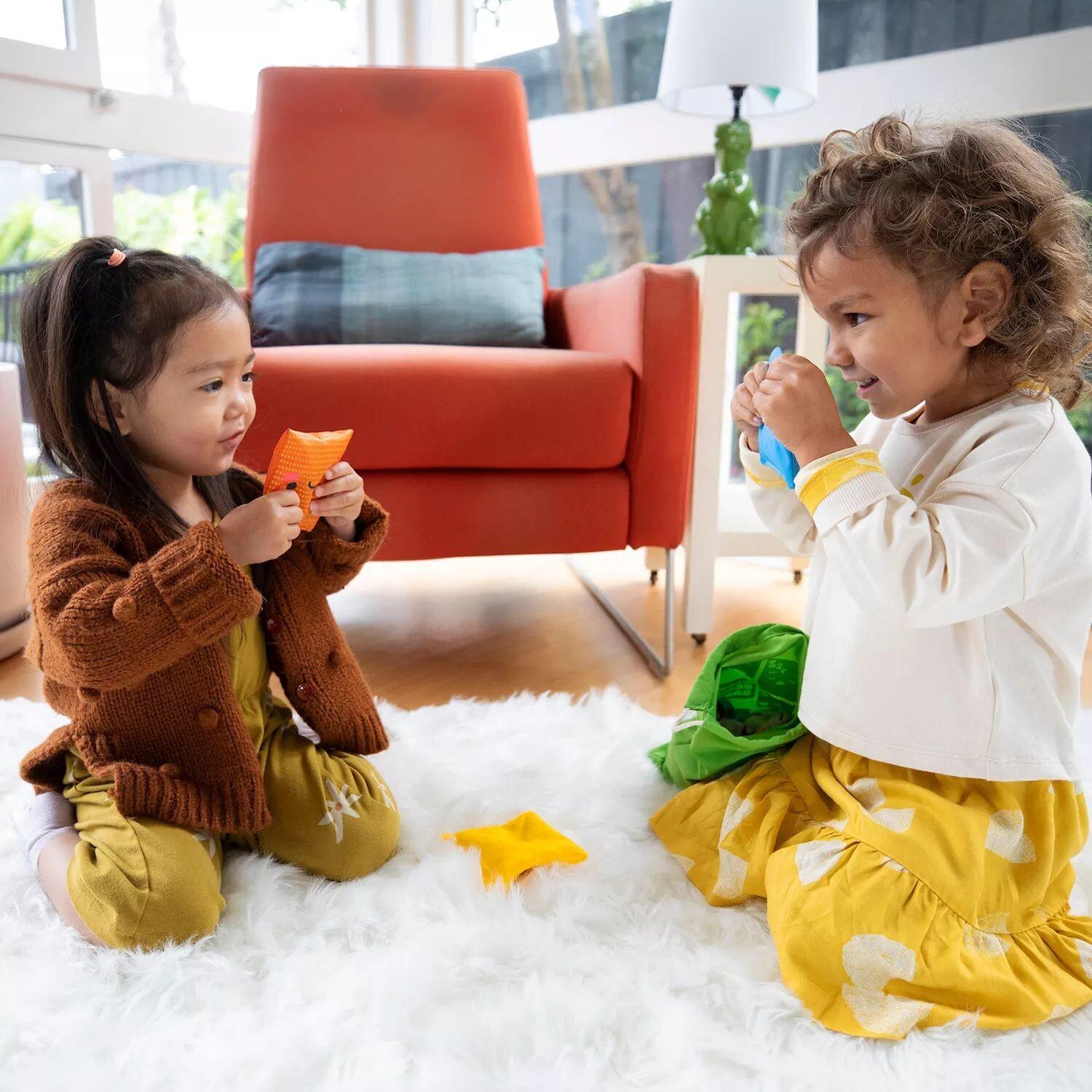 КАК ИГРАТЬ: Касайтесь, бросайте, ловите и рассказывайте об эмоциях, изображенных на каждой погремушке! Разнообразные практические занятия способствуют социально-эмоциональному обучению, тактильному осознанию и развитию мелкой моторики!