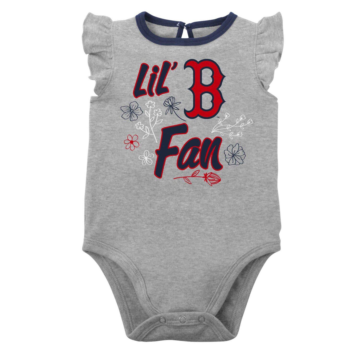 Помогите новому болельщику «Бостон Ред Сокс» в вашем доме показать, что он готов к каждому тайму, взяв этот комплект боди Little Fan. Этот набор из двух комплектов украшен очаровательной графикой Boston Red Sox и милыми рукавами с рюшами. Кроме того, три кнопки позволяют быстро и легко одеться.