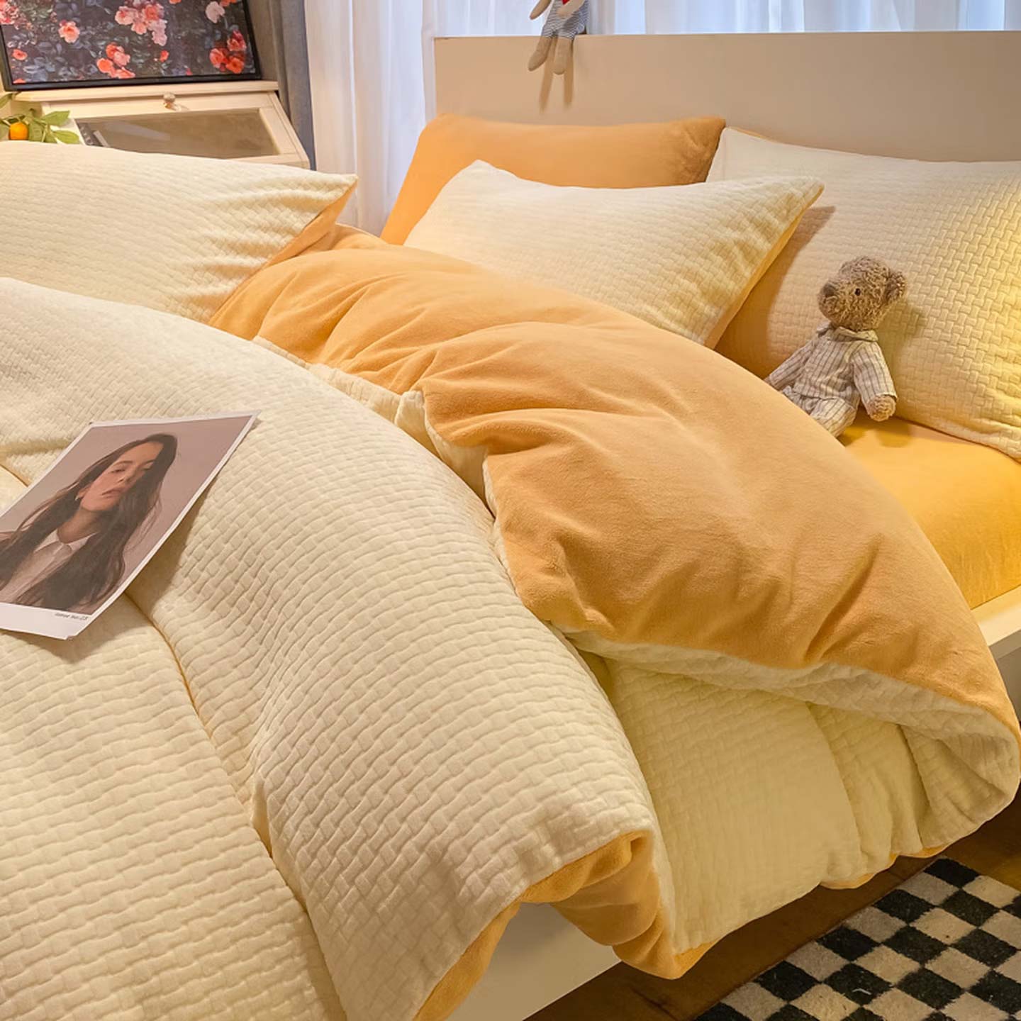Дизайн с двумя сторонами (версии A и B). Версия A: 3D-резной узор; Версия B: Молочный флис