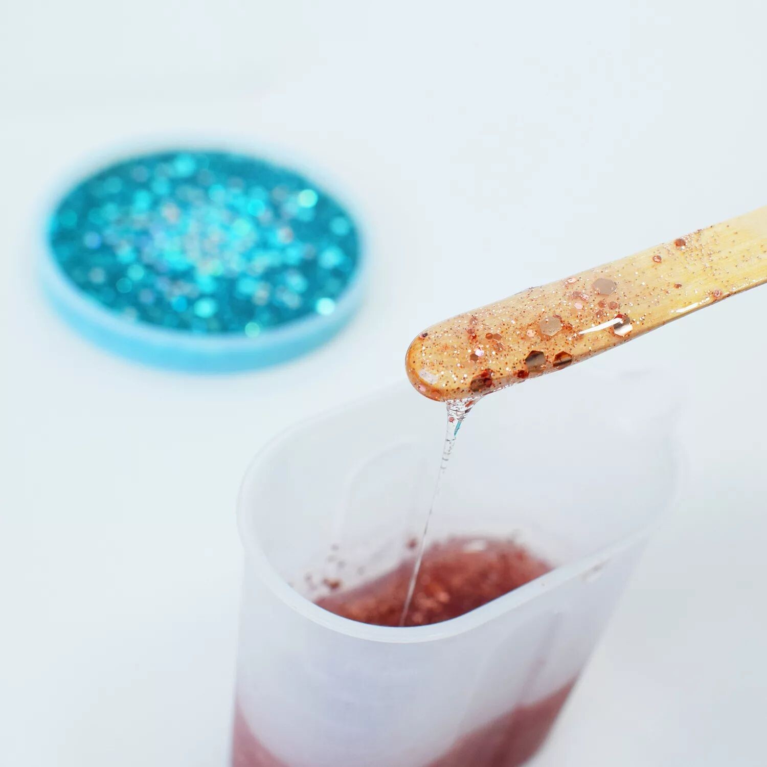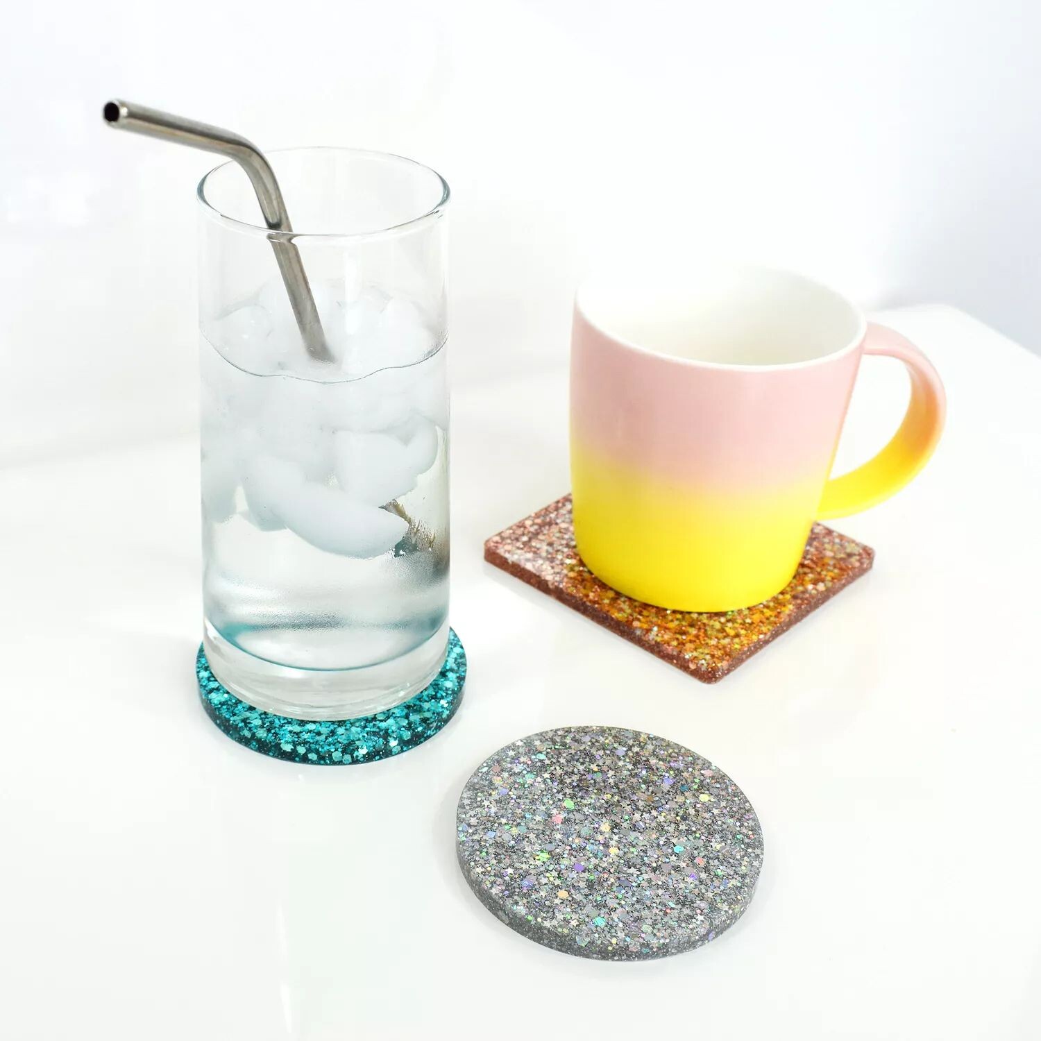 Настройте подставки по своему вкусу, комбинируя смеси блесток по вашему вкусу, смешайте со смолой и разлейте по формам.