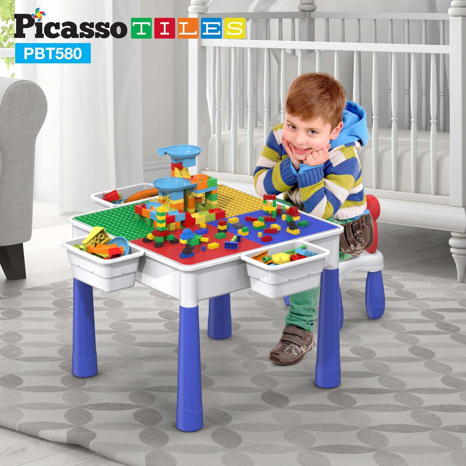 УЛЬТИМАЛЬНЫЙ НАБОР ДЛЯ СТРОИТЕЛЬСТВА И ИГРЫ: набор стола и стульев для детского центра PicassoTiles включает в себя 501 строительный кирпич стандартного размера, 56 больших строительных блоков и 24 мраморные воронки и горки. детали для универсального игрового набора, готового к творческому смешиванию и сочетанию дизайнов, созданных детьми, мальчиками и девочками в возрасте от 3 лет. Многоцелевой стол для сборки из кубиков двойного размера имеет размеры 20,1 x 20,1 x 16,5 дюймов (Д*Ш*В), что позволяет детям создавать аккуратную и безопасную среду для конструирования и творчества, одновременно способствуя образованию в области STEM.