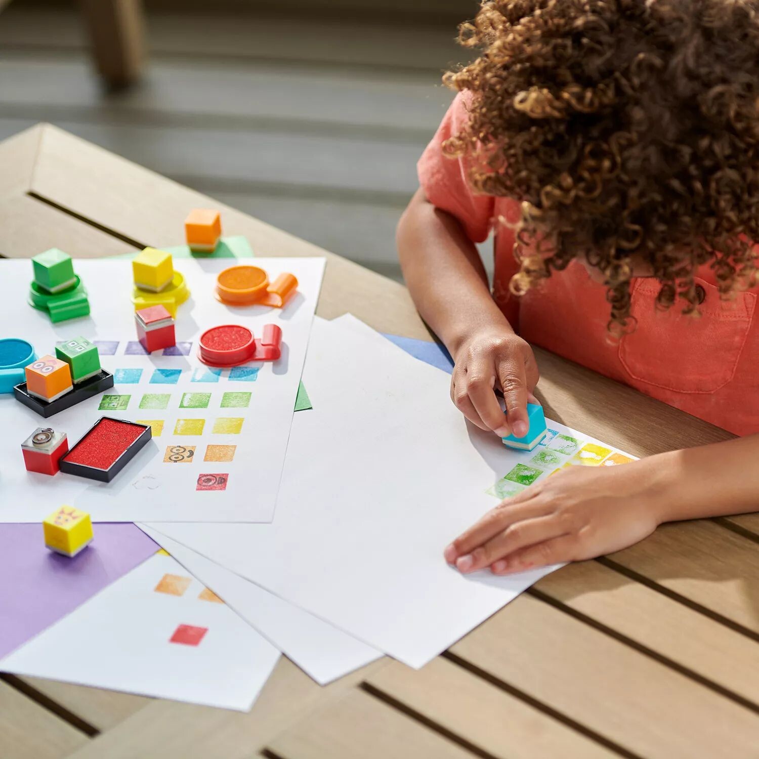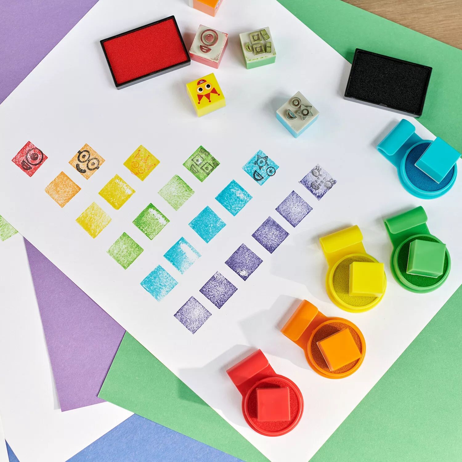 Числовые блоки один и два дают этому виду деятельности отпечаток одобрения. Дети могут использовать красочные штампы и чернильные подушечки, чтобы создать свой собственный парк Stampoline.