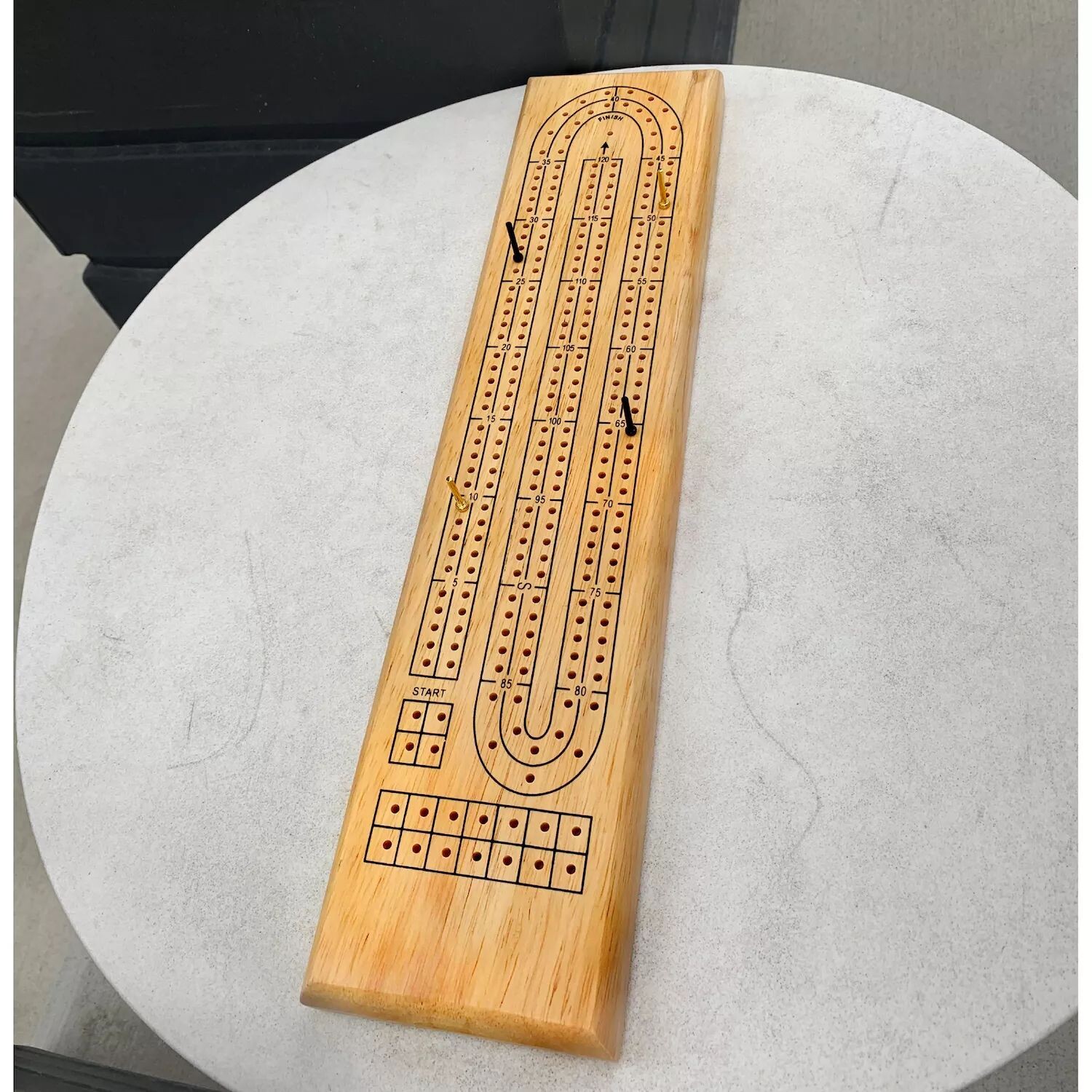 Доска для криббеджа из массива дерева с 2 дорожками, 4 металлических колышка для подсчета очков, правила для 5 вариантов игры
