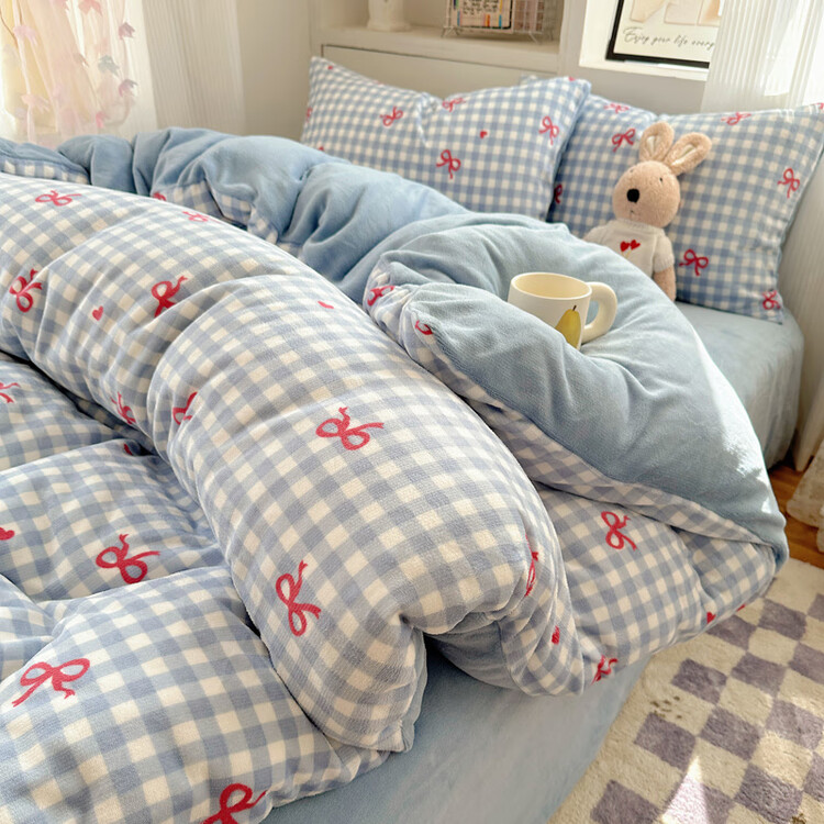 F-Blue Plaid Girls' Style [Heat-Retaining, Warm, Comfortable, Breathable]
