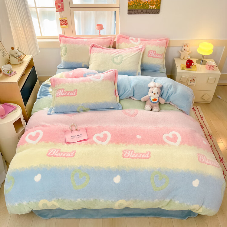 Rainbow Love Language Blue [Double-Sided Milk Velvet/Thickened Warm]