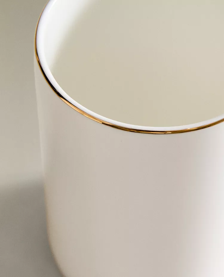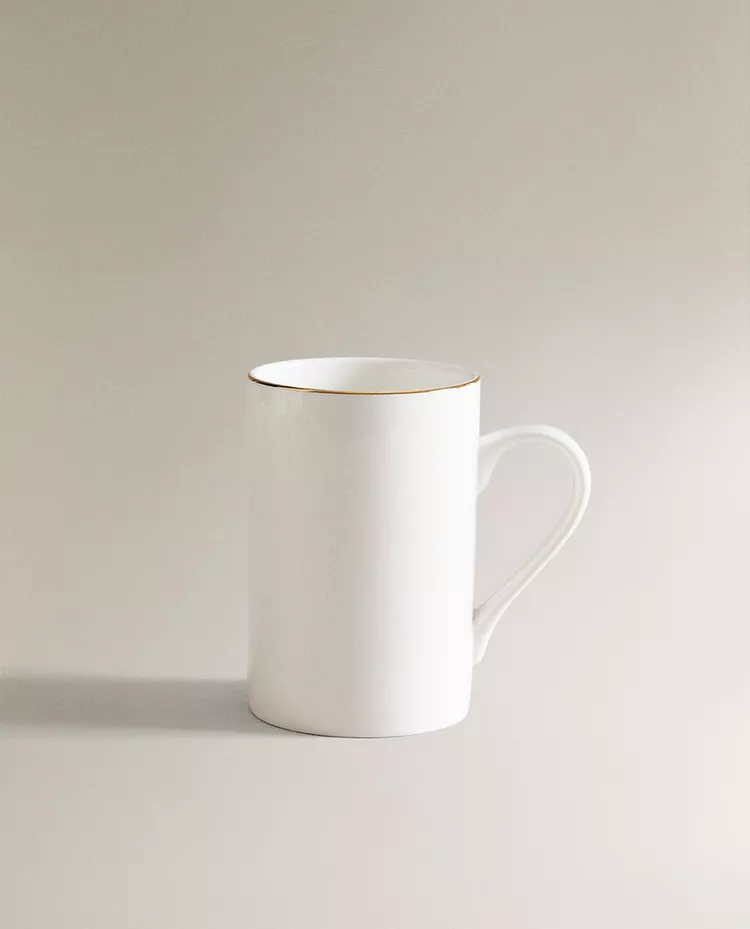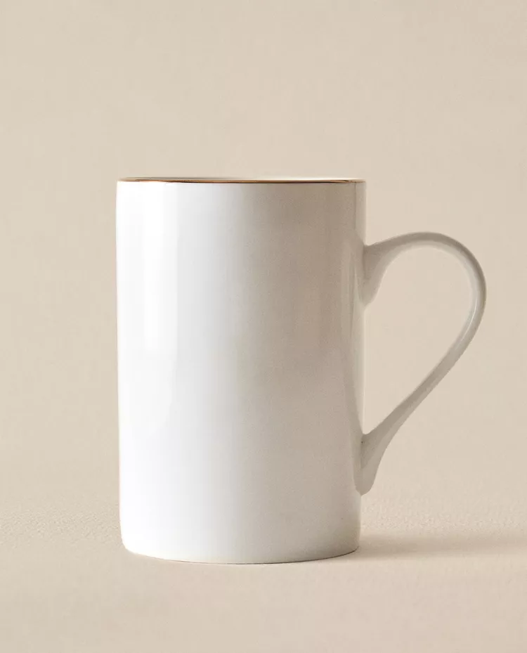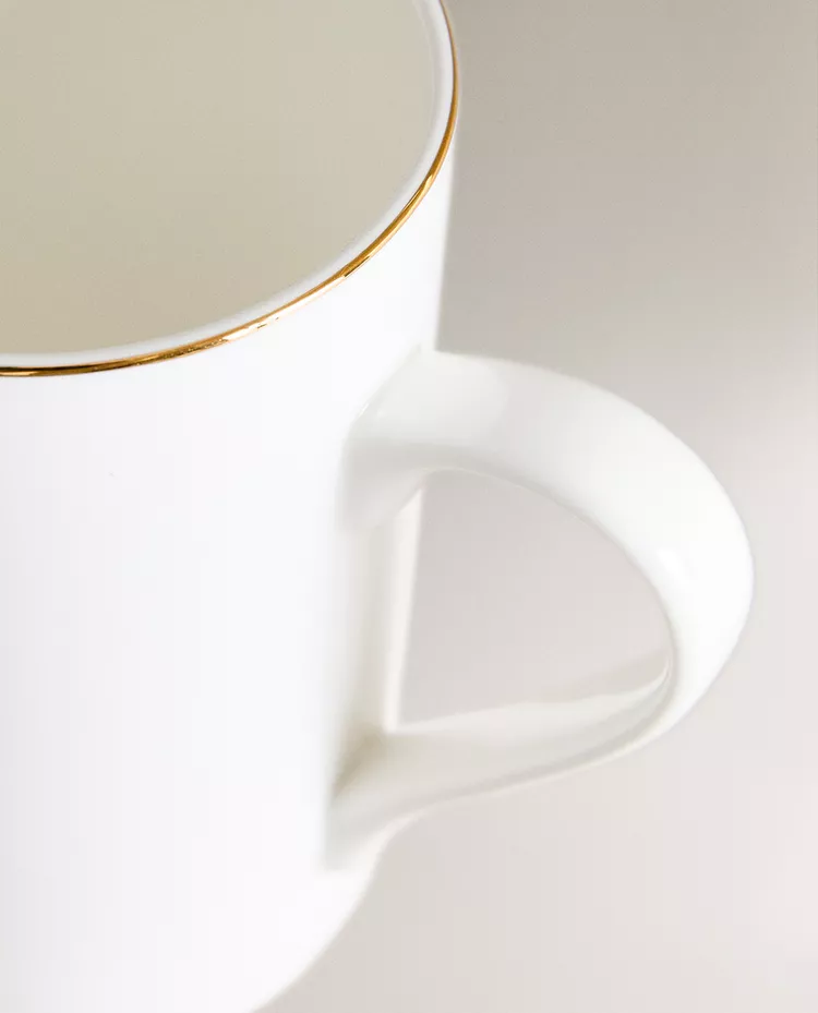 Кружка из костяного фарфора. Украшена контрастным ободком.